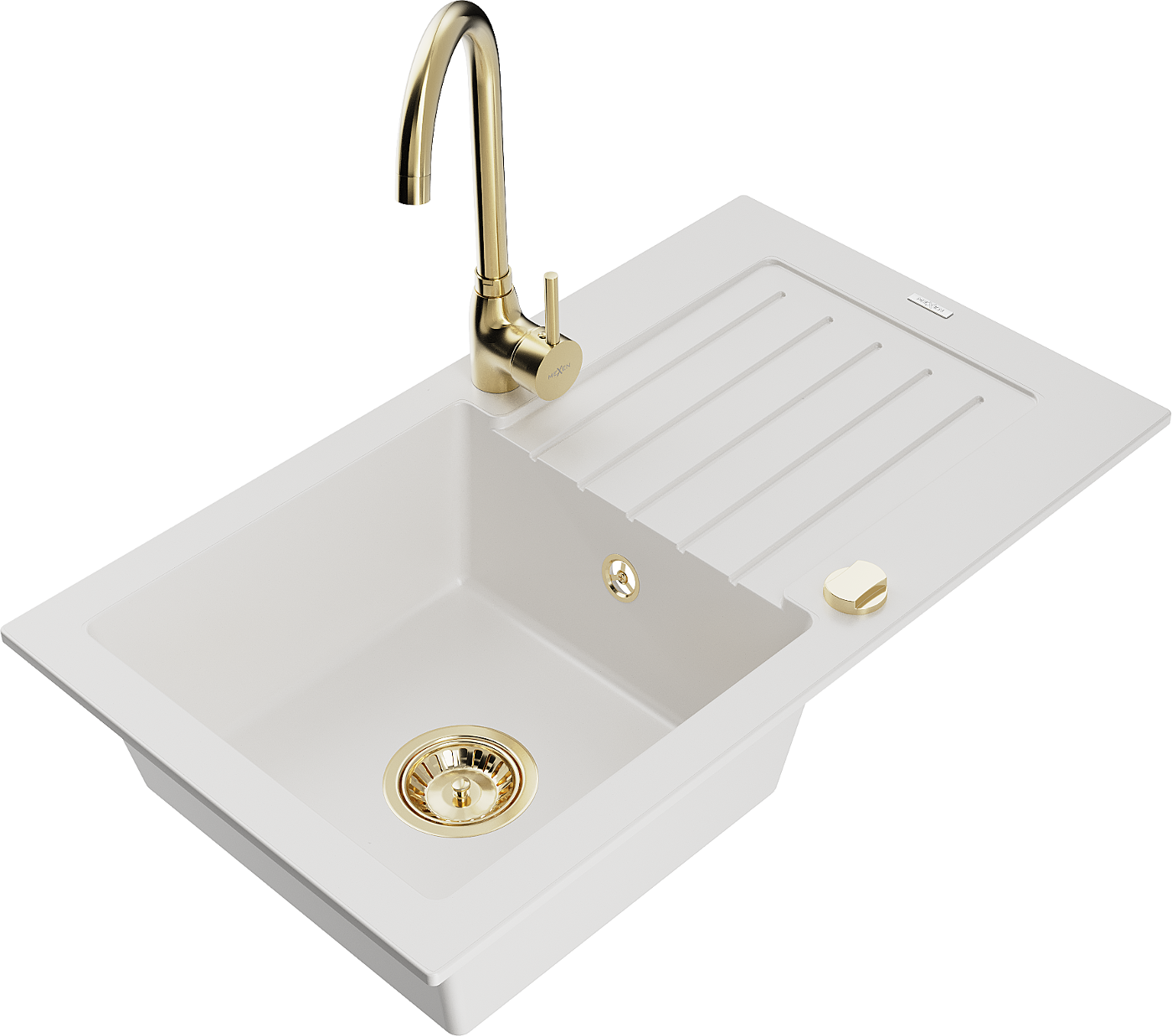 Mexen Pablo granitinis plautuvė 1 skyrelio su džiovintuvu ir virtuviniu maišytuvu Telma, baltas - 6510-20-670200-50