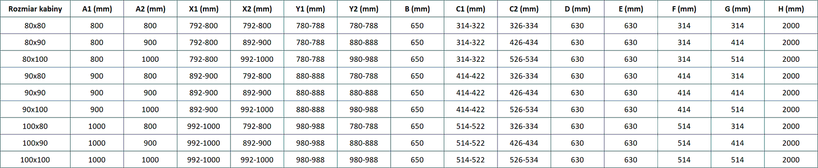 Dušo kabinos, durys ir sienelės yra standartiškai pritaikytos montuoti ant nustatytų matmenų dušo padėklų. Būtent šie matmenys nurodomi gaminio pavadinime arba aprašyme. Tačiau atkreipkite dėmesį, kad faktiniai elementų matmenys gali šiek tiek skirtis nuo vardinių verčių. Planuojant montuoti tiesiai ant grindų, rekomenduojama atidžiai patikrinti išorinius matmenis ir elementų išdėstymą pagal techninį brėžinį.