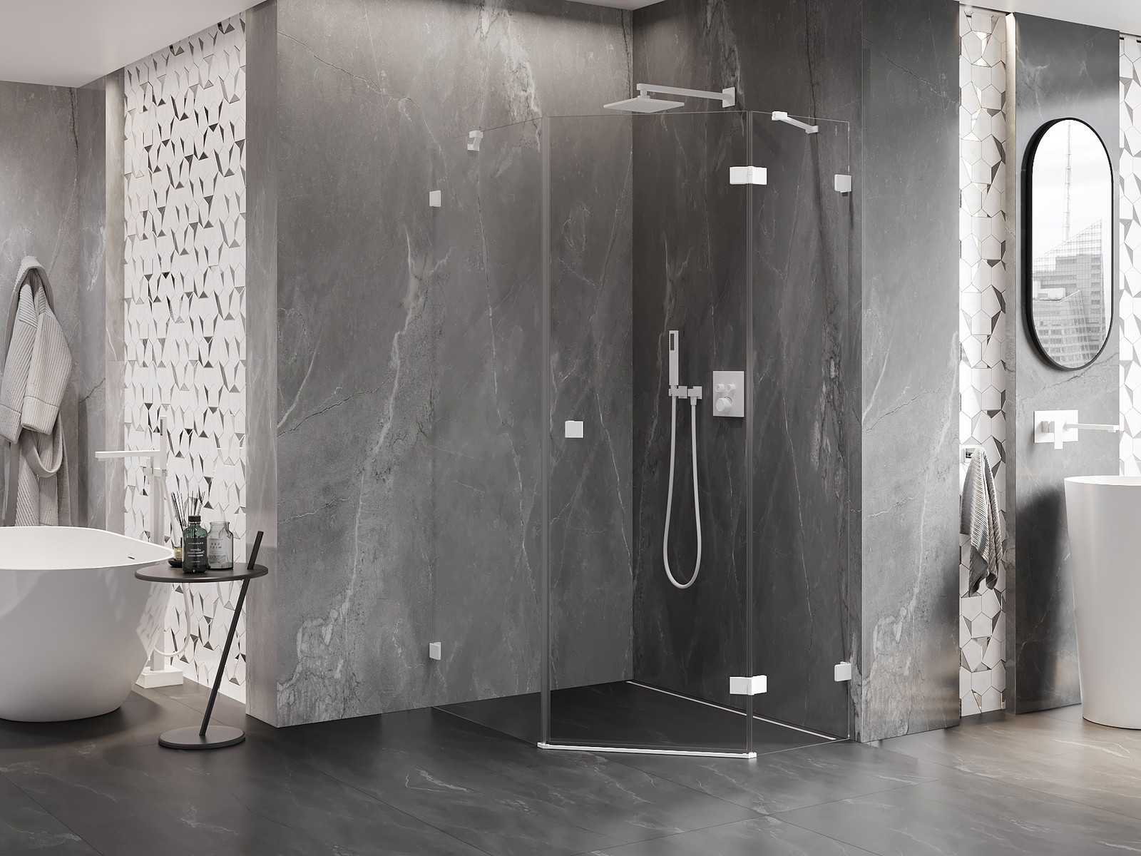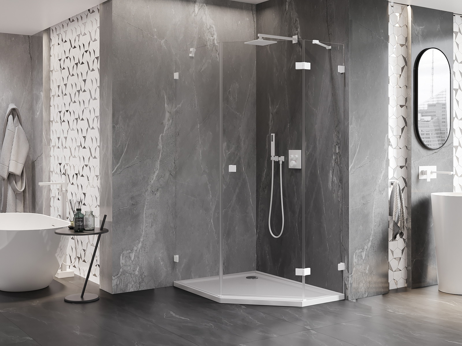 Mexen Lunar penkiakampė dušo kabina, dešinė, 80 x 90 cm, skaidri, balta - 831-080P-090L-20-00-P