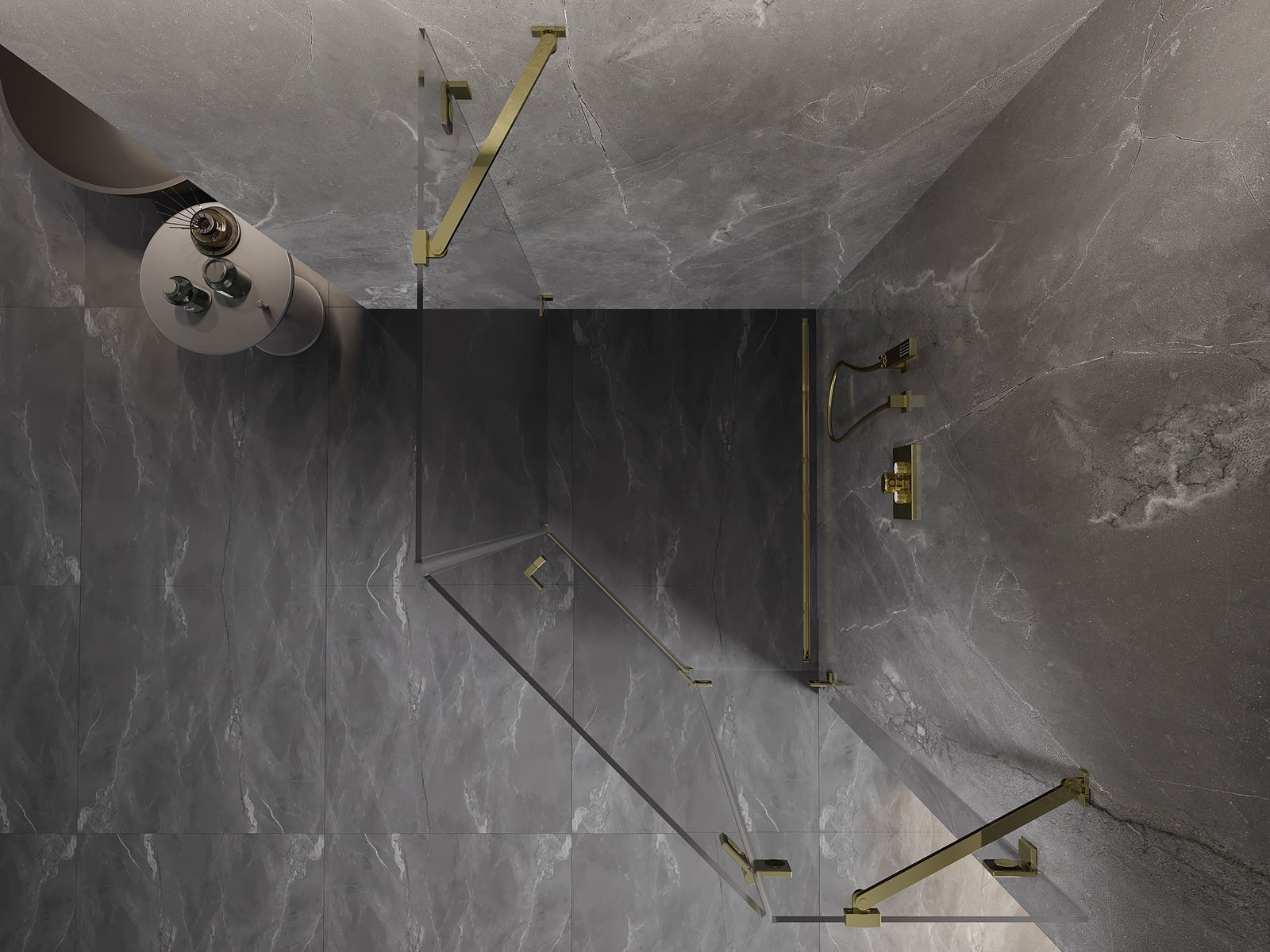 Mexen Lunar penkiakampė dešinė 80 x 100 cm skaidri aukso spalvos dušo kabina - 831-080P-100L-50-00-P
