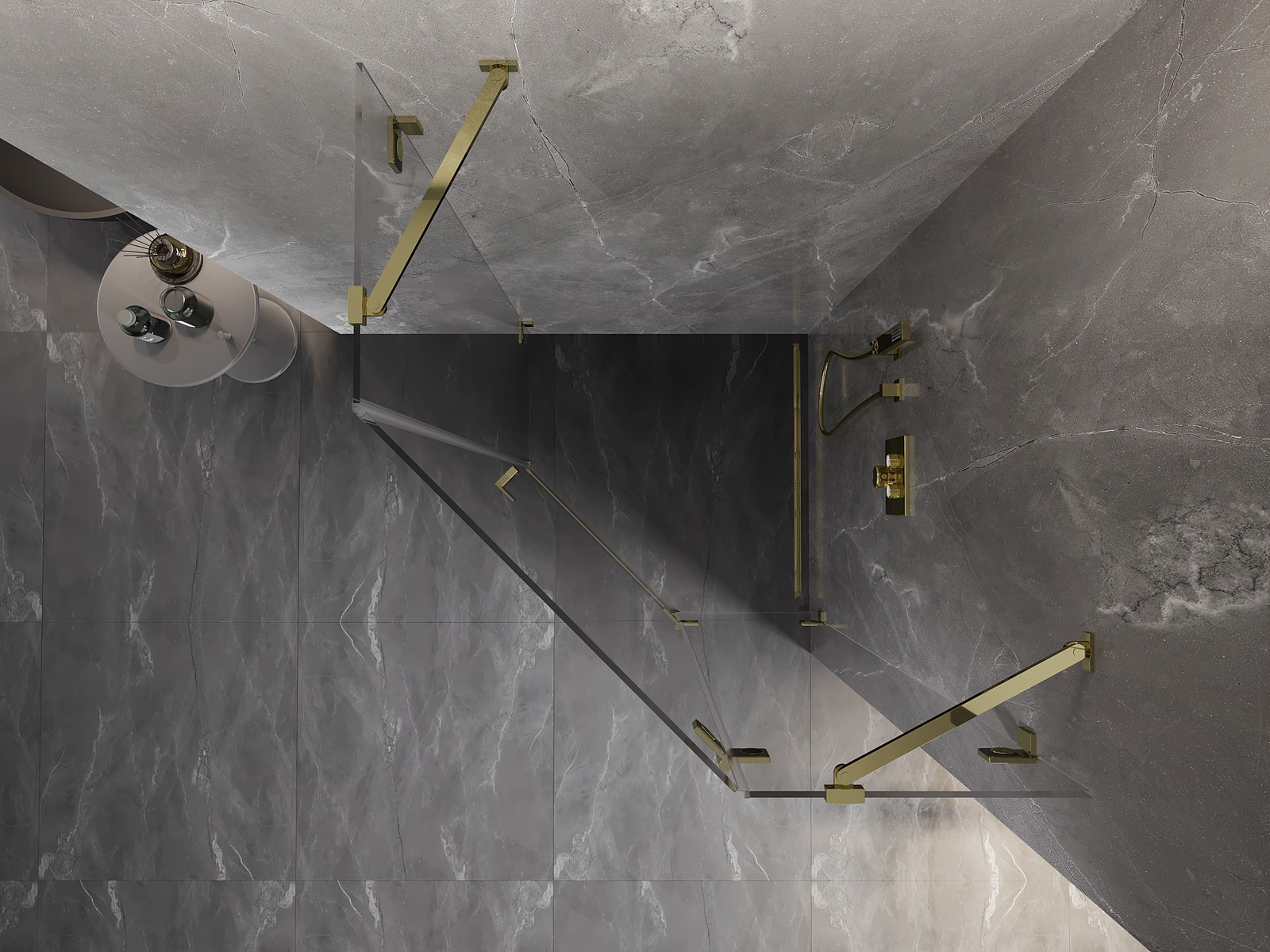 Mexen Lunar penkiakampė atveriama dešinė dušo kabina 90 x 90 cm, skaidri, auksinė - 831-090P-090L-50-00-P