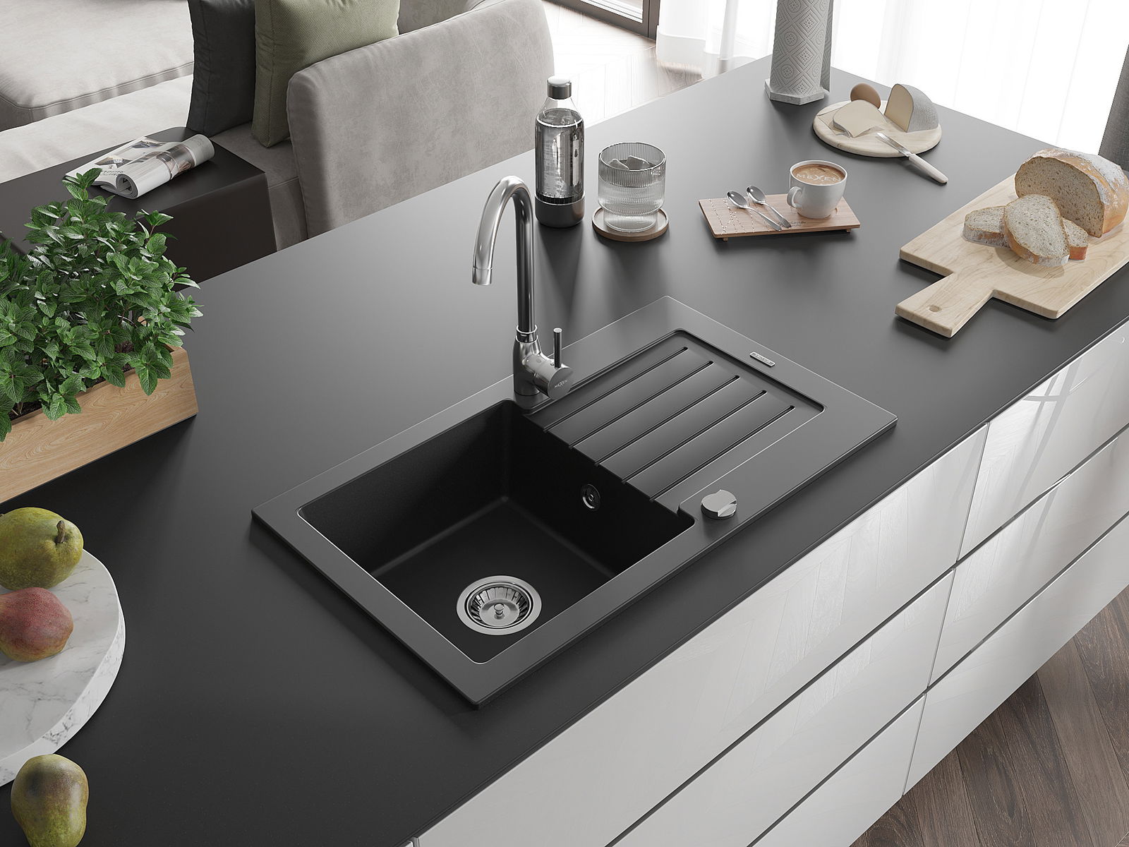 Kriauklės paviršius yra atsparūs dėmėms ir spalvos pasikeitimui, dėl kurio lengva valyti ir ilgą laiką išlaikyti savo spalvą. Estetinis ir praktiškai papildantis kiekvieną virtuvę.