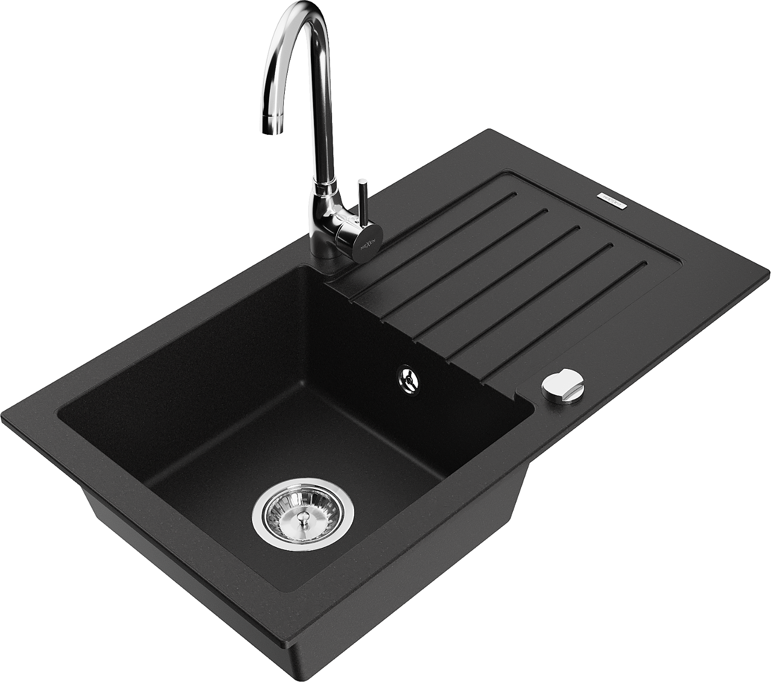 Mexen Pablo granitinė vienos plautuvės kriauklė su nutekamu ir Telma virtuviniu maišytuvu, juoda - 6510-77-670200-00