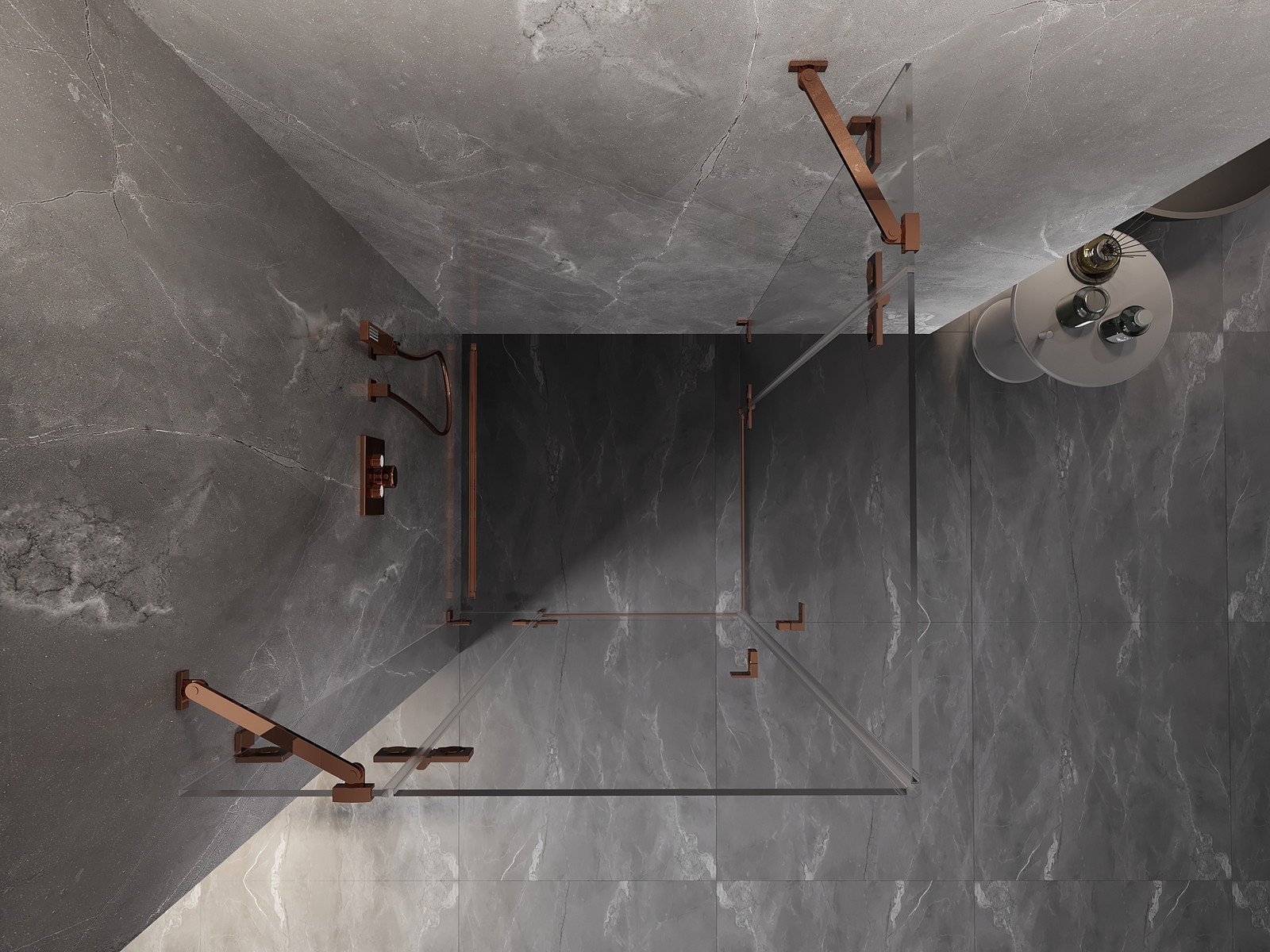 Mexen Lunar Dviguba dušo kabina su atveriamomis durimis 90 x 90 cm, skaidri, rožinis auksas - 834-090L-090P-60-00