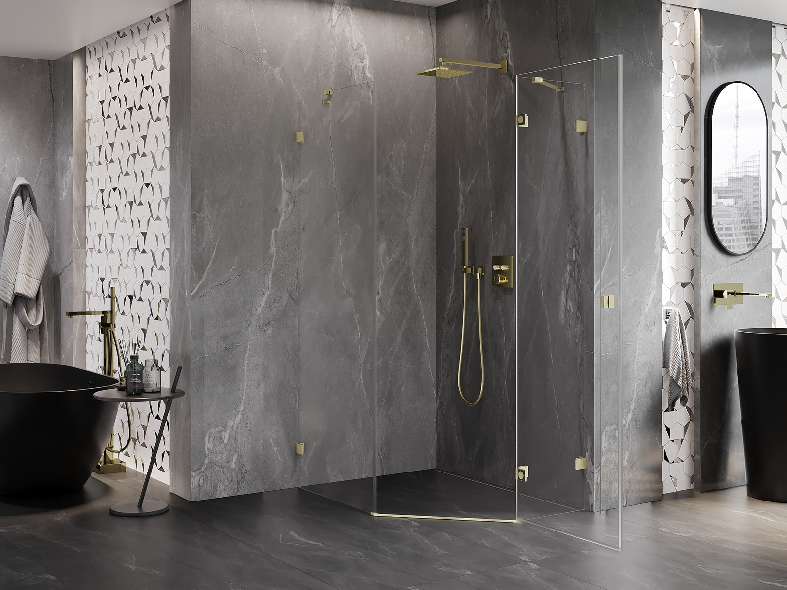 Mexen Lunar penkiakampė dušo kabina varstoma dešinė 90 x 100 cm, skaidri, auksinė šlifuota - 831-090P-100L-55-00-P