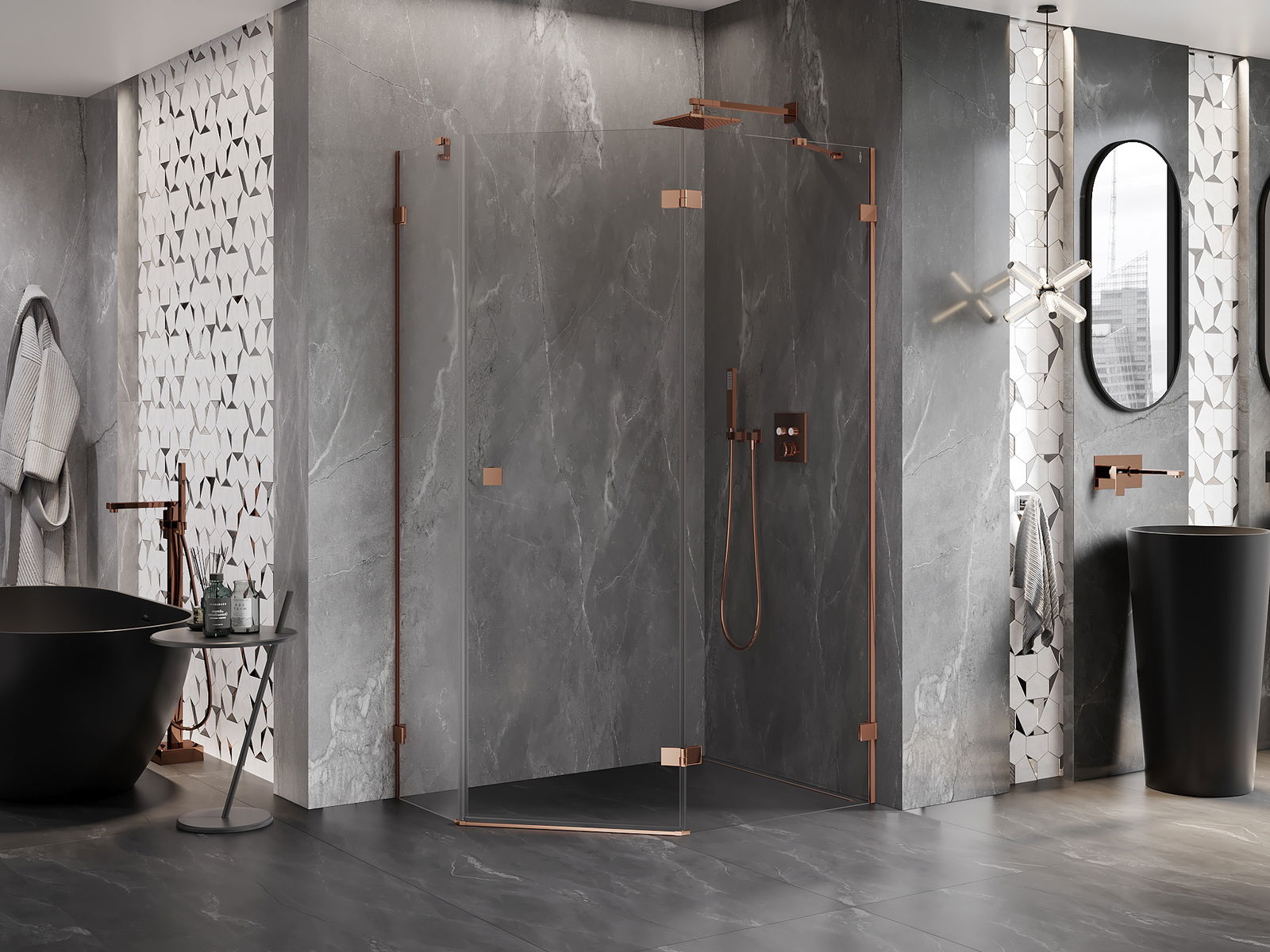 Mexen Lunar penkiakampė dušo kabina, dešinė atveriama, 100 x 90 cm, skaidri, rožinio aukso spalva - 831-100P-090L-60-00-P