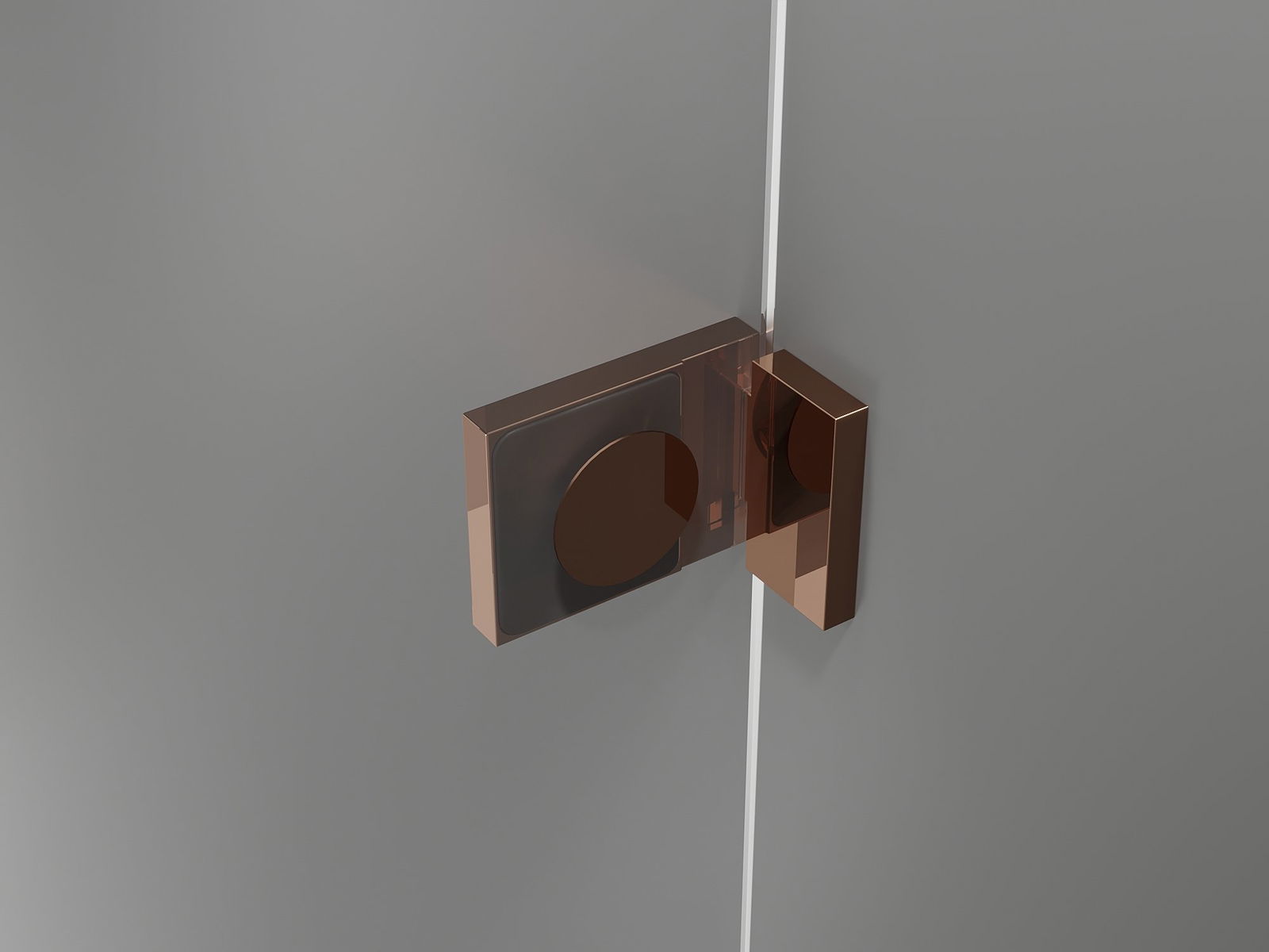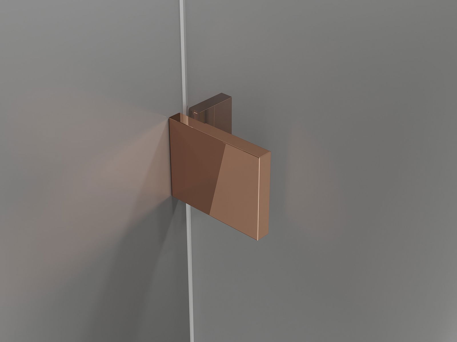 Spaustukai ir vyriai pagaminti iš labai patvaraus žalvario, papildomai sukuriantys lygią stiklo plokštumą. Tai puikus pasirinkimas, jungiantis eleganciją, patvarumą ir šiuolaikinį dizainą. Tokie sprendimai prideda dušo estetikai ir tuo pačiu palengvina švaros palaikymą.
