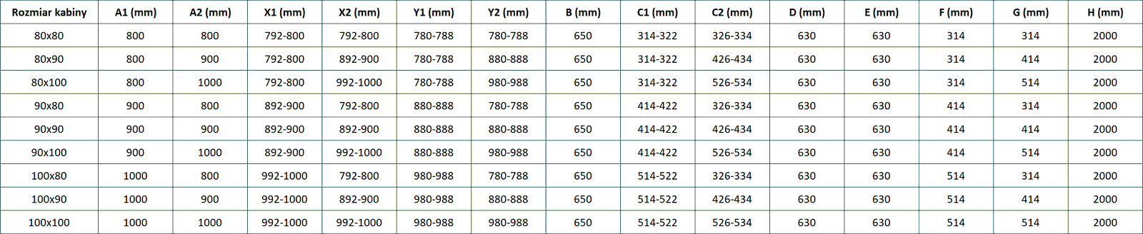 Dydis: 100x90 cm (dešinės durys 100 cm, sienelė 90 cm)