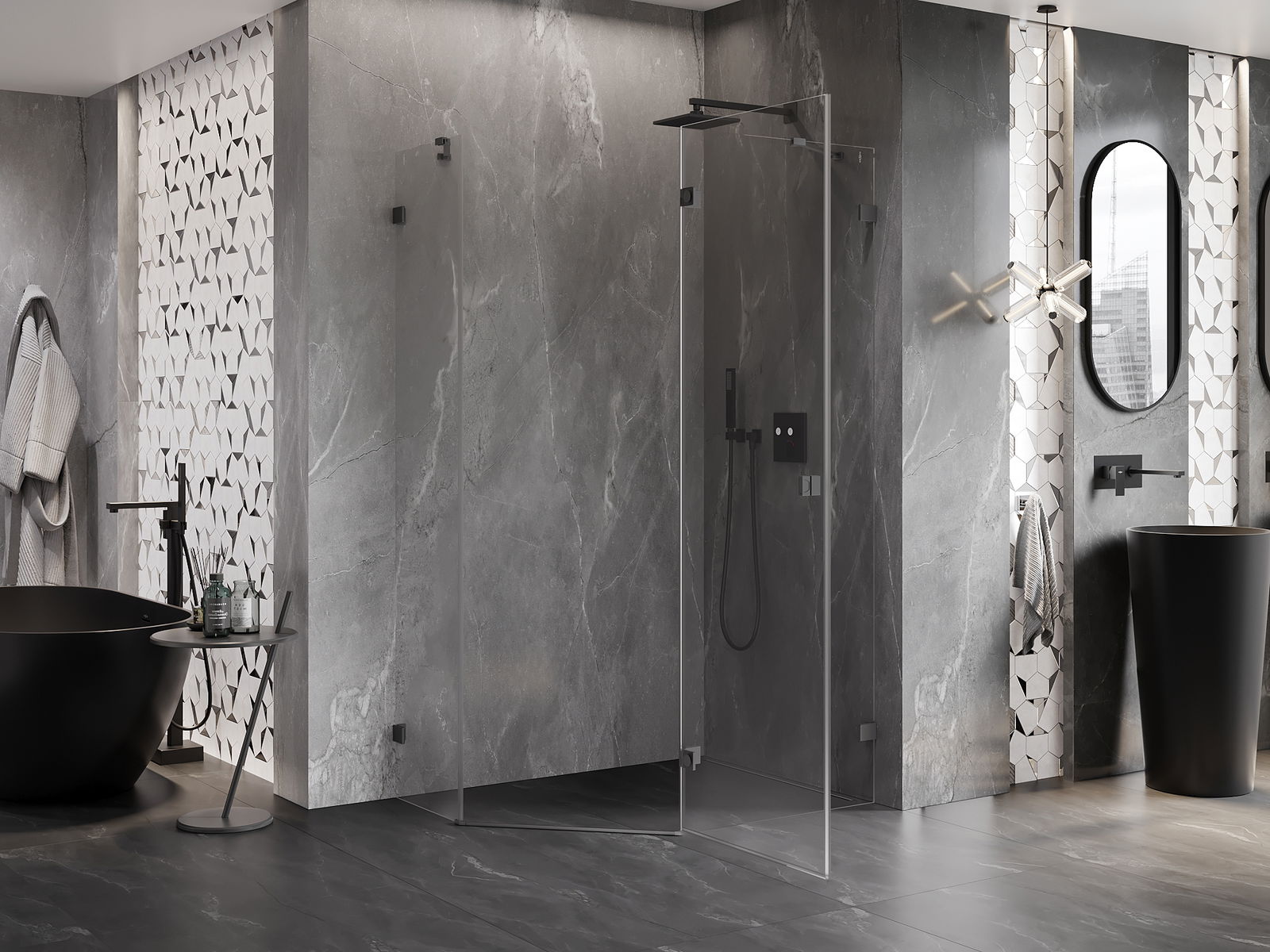 Spaustukai ir vyriai pagaminti iš labai patvaraus žalvario, papildomai sukuriantys lygią stiklo plokštumą. Tai puikus pasirinkimas, jungiantis eleganciją, patvarumą ir šiuolaikinį dizainą. Tokie sprendimai prideda dušo estetikai ir tuo pačiu palengvina švaros palaikymą.