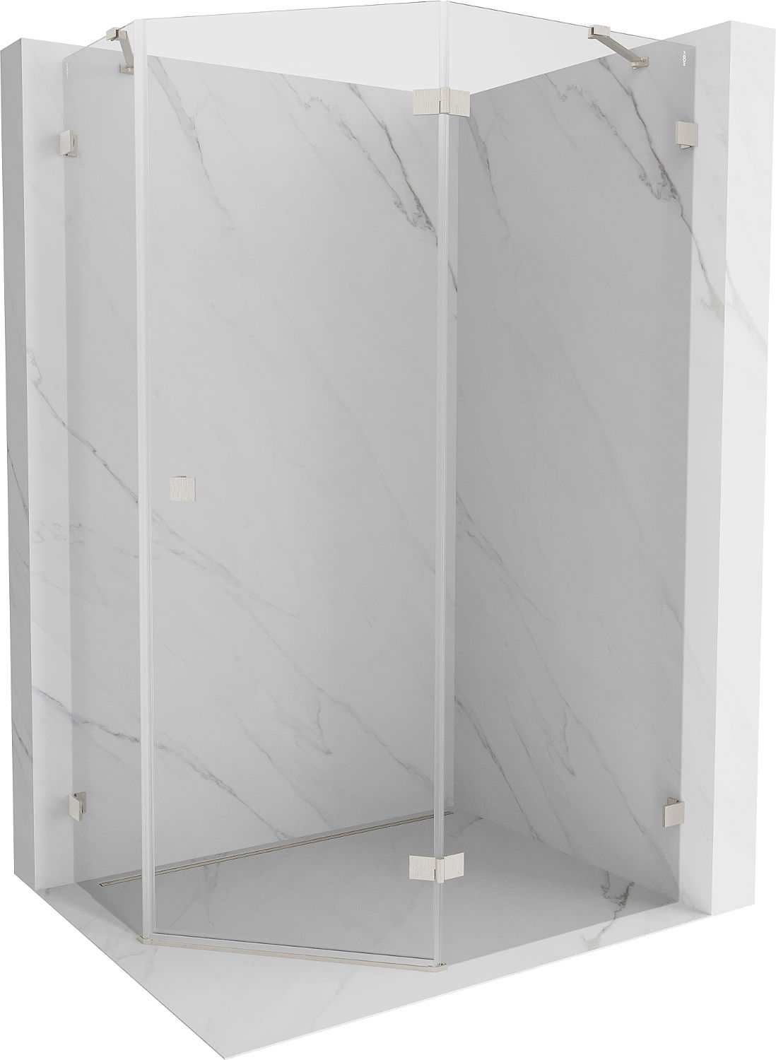 Mexen Lunar dvitikampė dešinė dušo kabina 90 x 80 cm, permatomos, šlifuotas nikelis - 831-090P-080L-97-00-P
