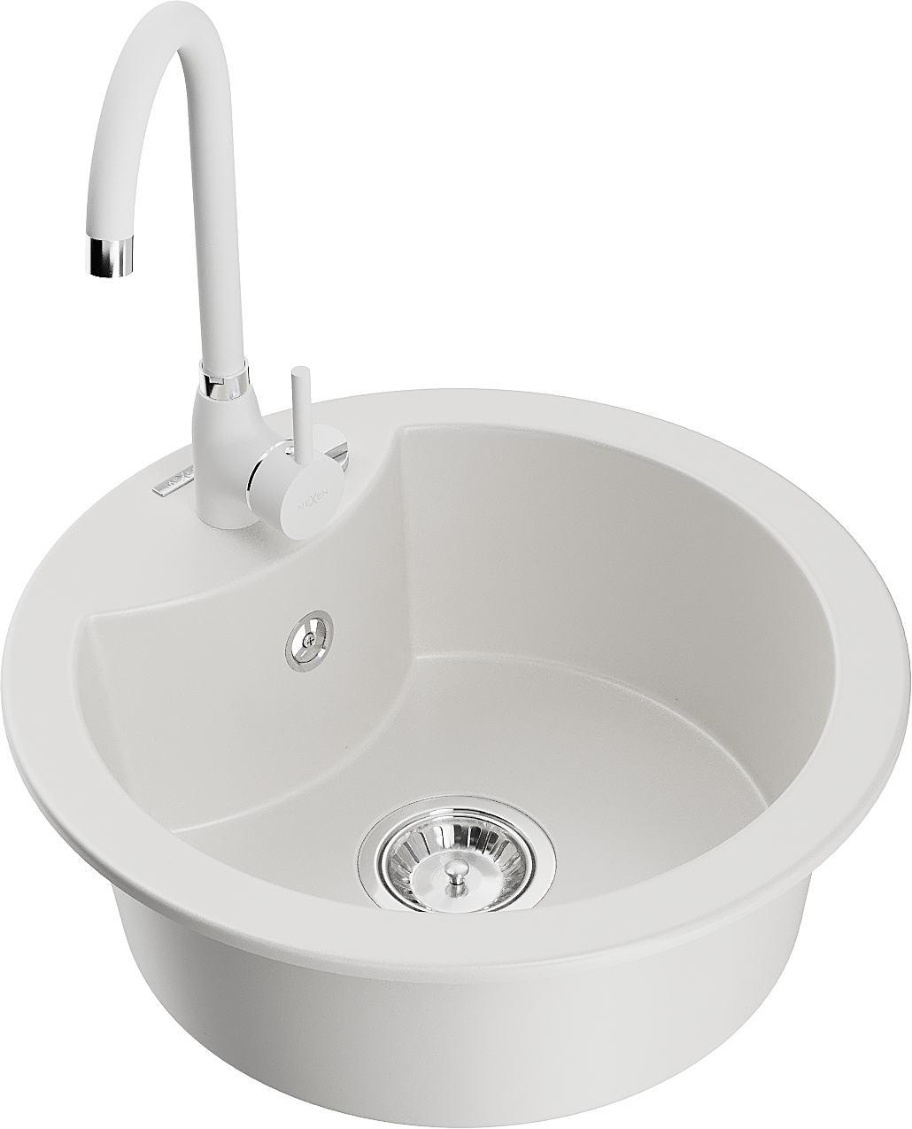 Mexen Diego granito plautuvė 1-skyriumi su virtuviniu maišytuvu Telma, baltas - 6512-20-670200-20