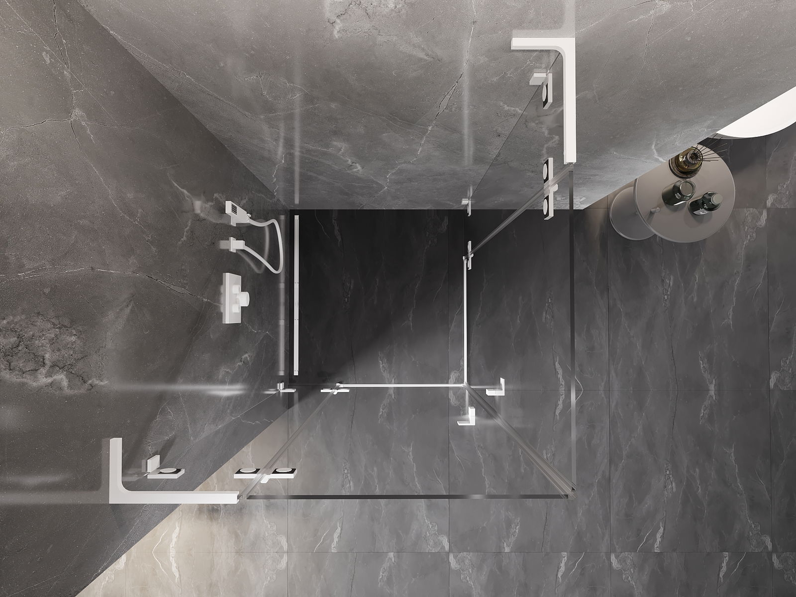 Spaustukai ir vyriai pagaminti iš labai patvaraus žalvario, papildomai sukuriantys lygią stiklo plokštumą. Tai puikus pasirinkimas, jungiantis eleganciją, patvarumą ir šiuolaikinį dizainą. Tokie sprendimai prideda dušo estetikai ir tuo pačiu palengvina švaros palaikymą.