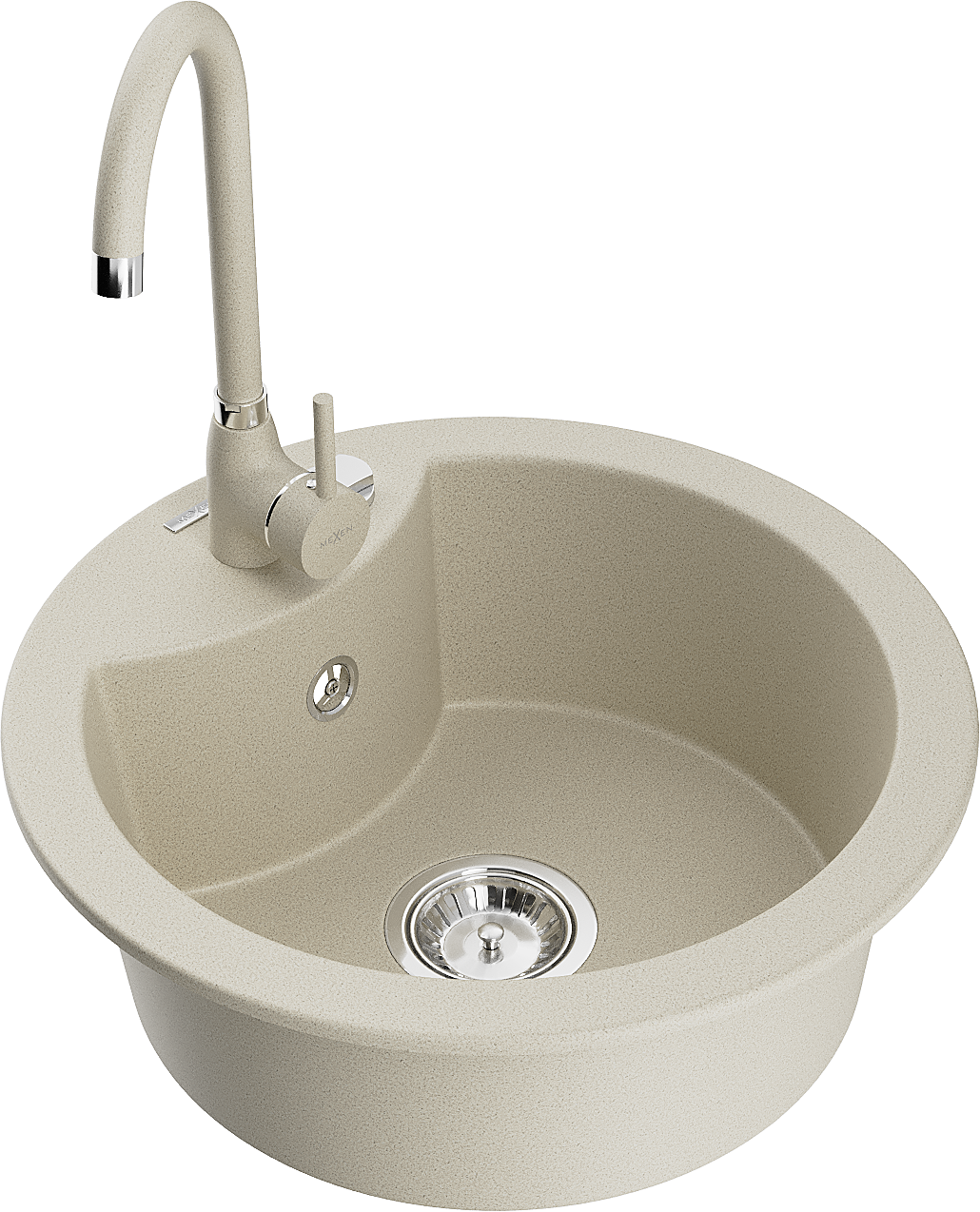Mexen Diego vienos dubens granitinė virtuvės kriauklė su Telma maišytuvu, smėlio spalvos - 6512-69-670200-69