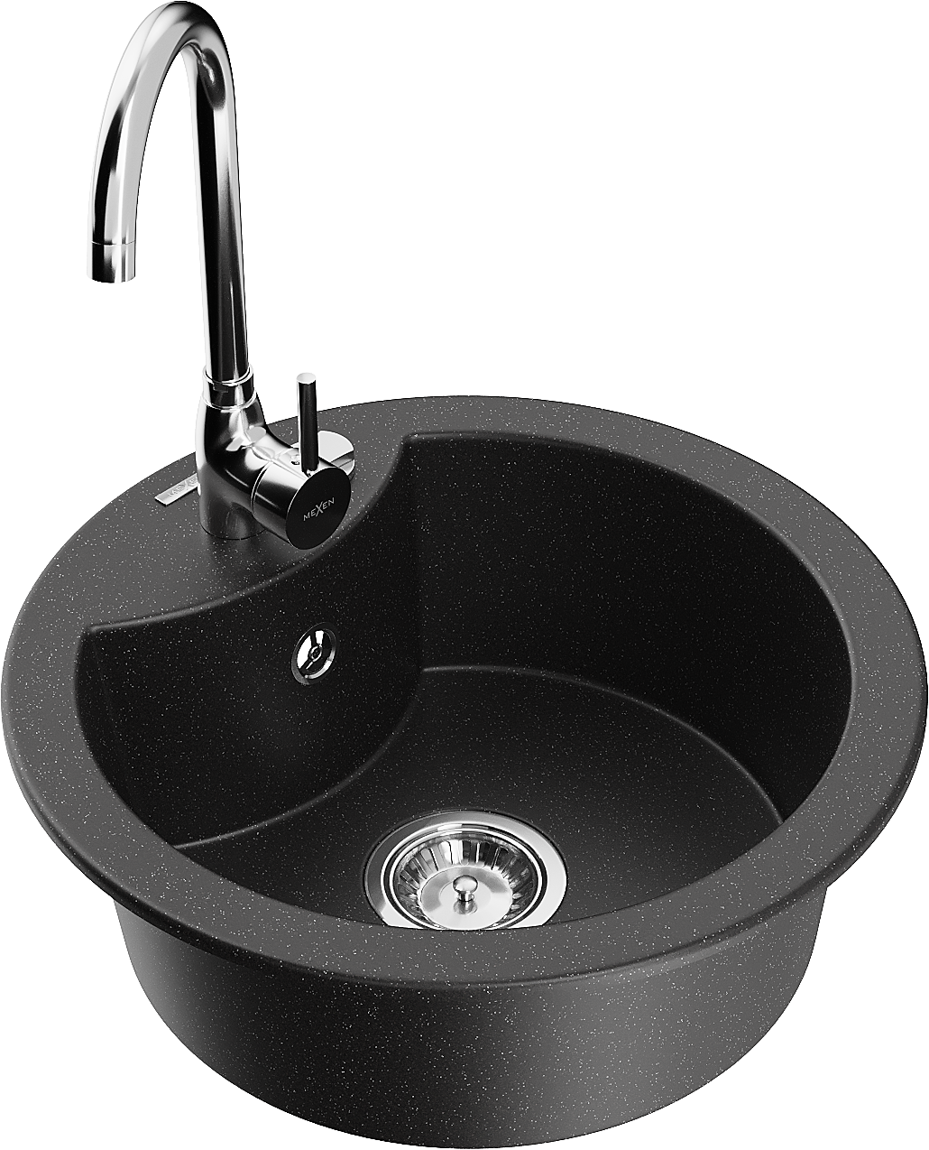 Mexen Diego granito virtuvės plautuvė su vienu dubeniu ir Telma maišytuvu, juoda/sidabrinė - 6512-73-670200-00