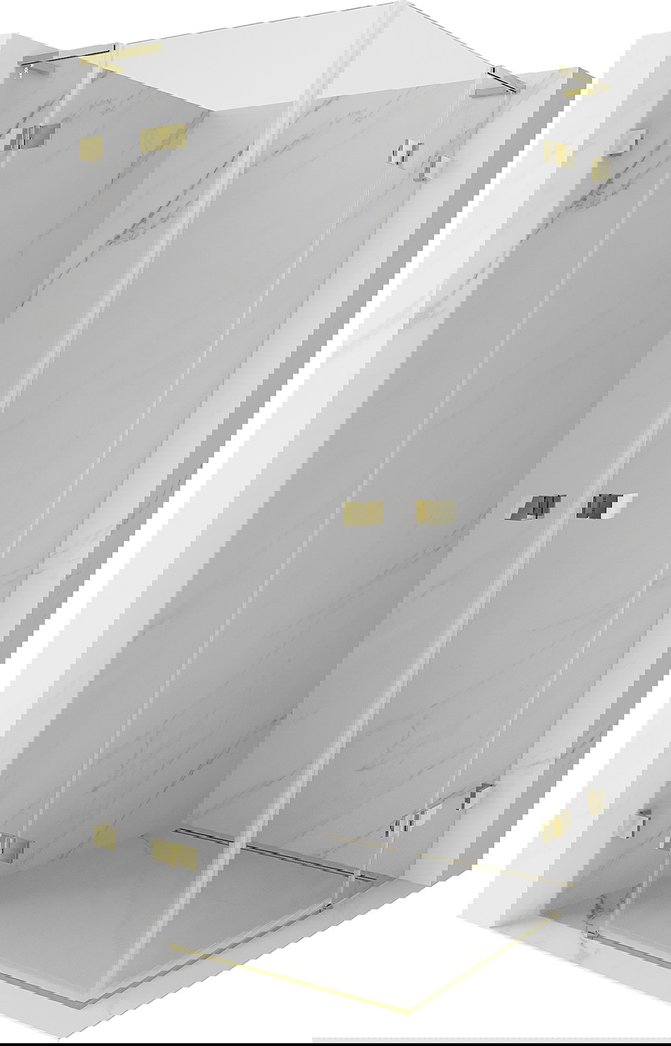 Spaustukai ir vyriai pagaminti iš labai patvaraus žalvario, papildomai sukuriantys lygią stiklo plokštumą. Tai puikus pasirinkimas, jungiantis eleganciją, patvarumą ir šiuolaikinį dizainą. Tokie sprendimai prideda dušo estetikai ir tuo pačiu palengvina švaros palaikymą.
