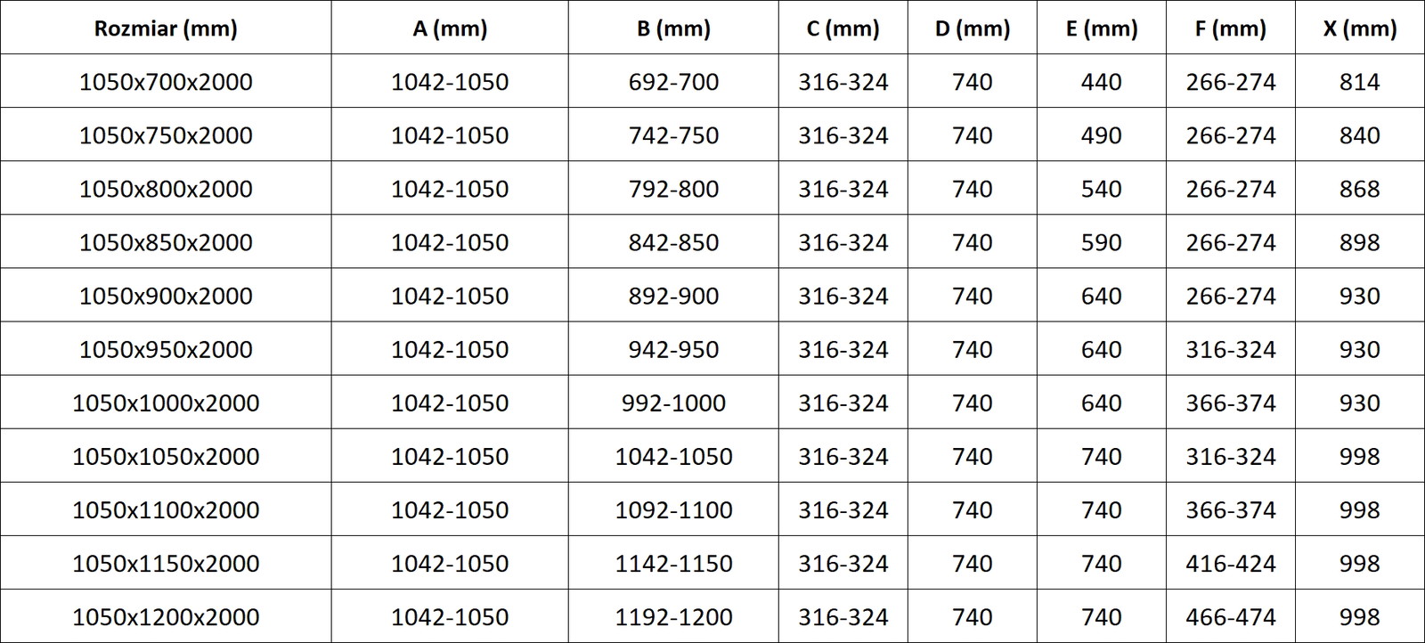 Dydis: 105x100 cm (kairės pusės durys 105 cm, dešinės pusės durys 100 cm)