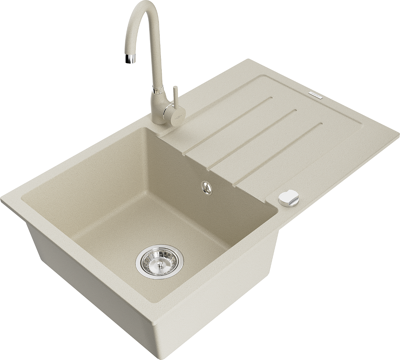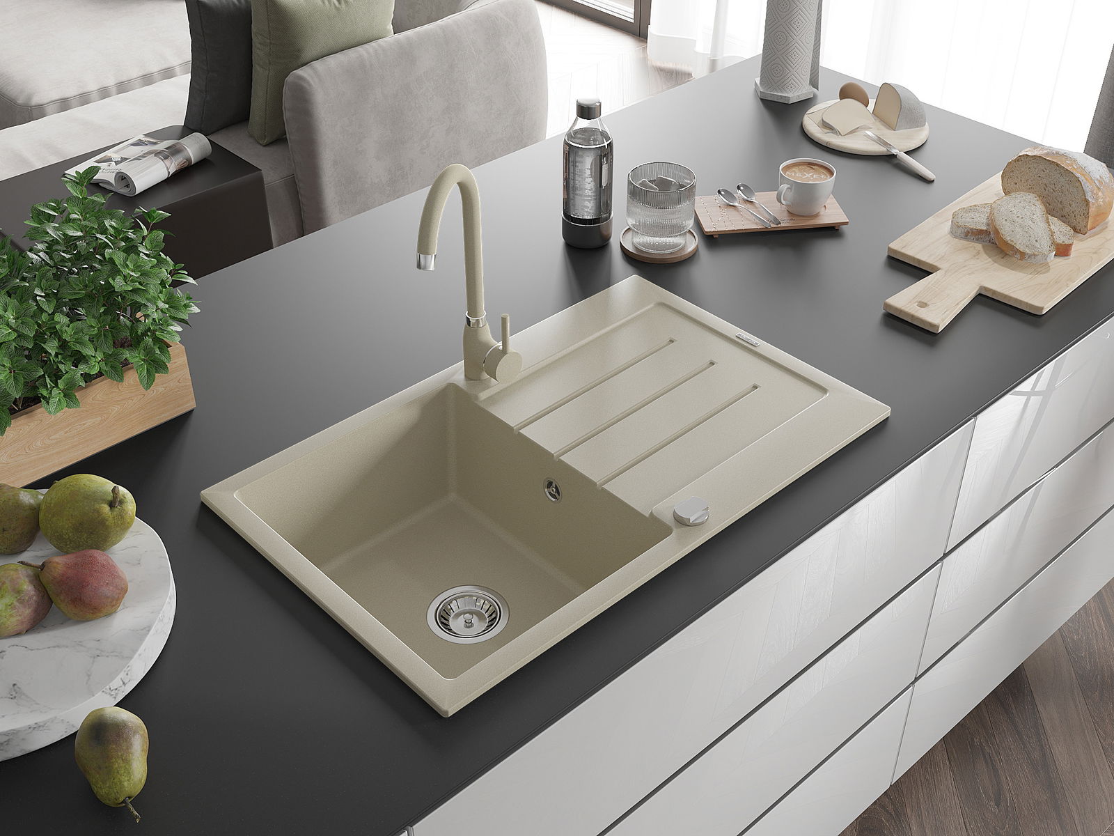 Mexen Bruno granitinis kriauklė vienos kameros su nutekėjimu ir virtuviniu maišytuvu Telma, smėlio spalvos - 6513-69-670200-69