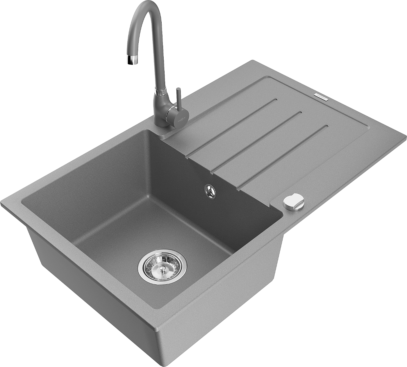 Mexen Bruno granito plautuvė 1 skyrelio su nutekėjimu ir virtuvės kranu Telma, pilkas - 6513-71-670200-71