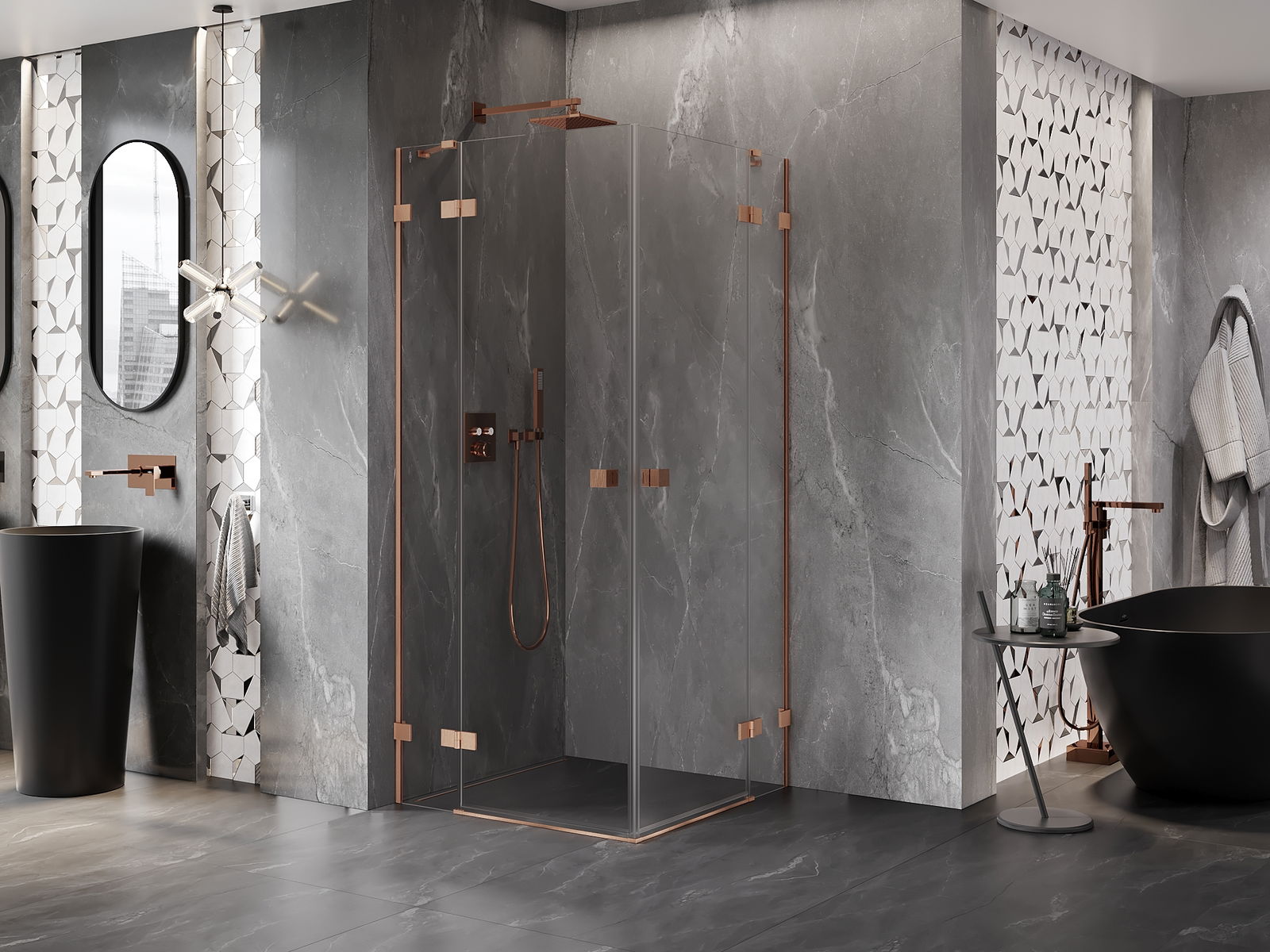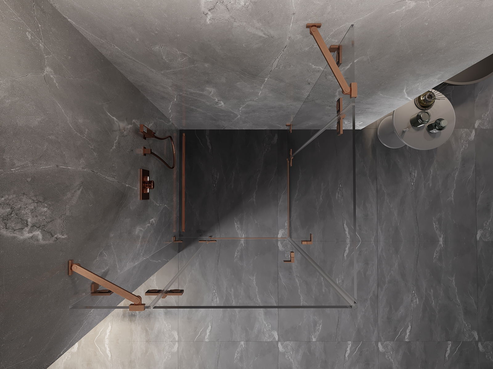 Mexen Lunar Duo atveriama dušo kabina 70 x 70 cm, skaidri, šlifuotas varis - 834-070L-070P-65-00