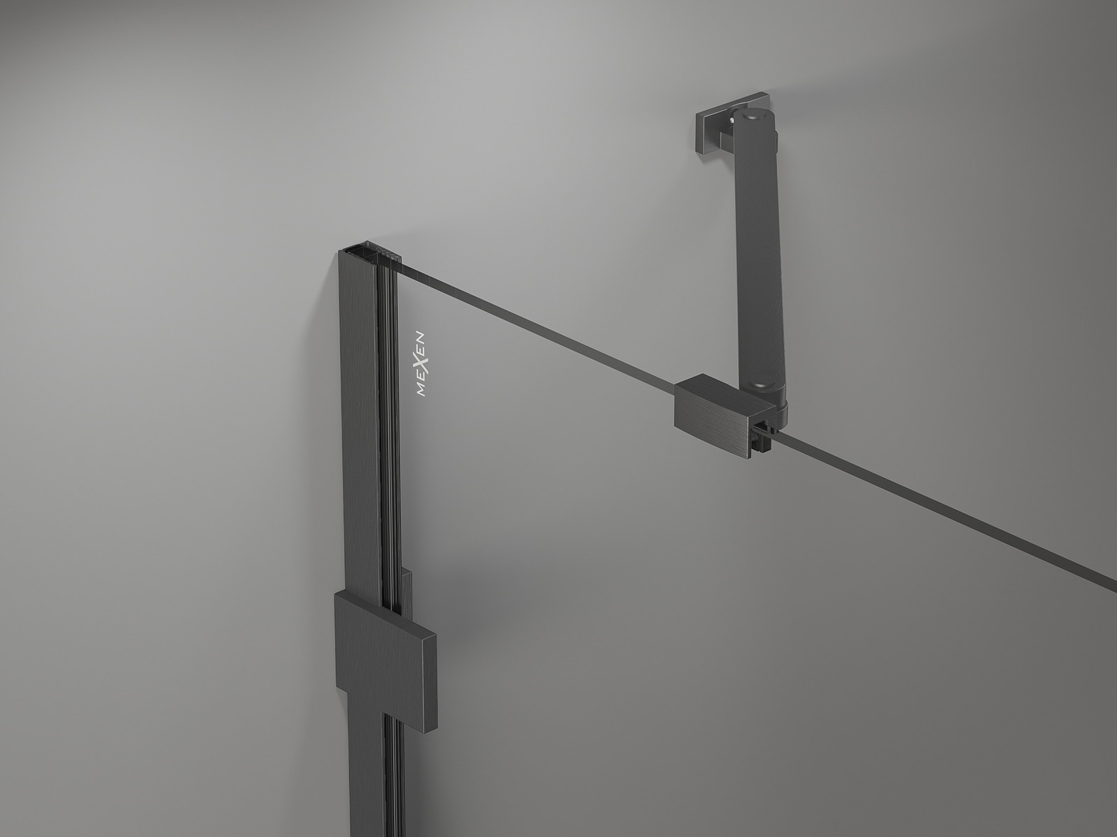 Mexen Lunar Dviguba dušo kabina atveriama kairinė 90 x 70 cm, skaidri, švariai pilka šepečiuota - 834-090L-070P-66-00
