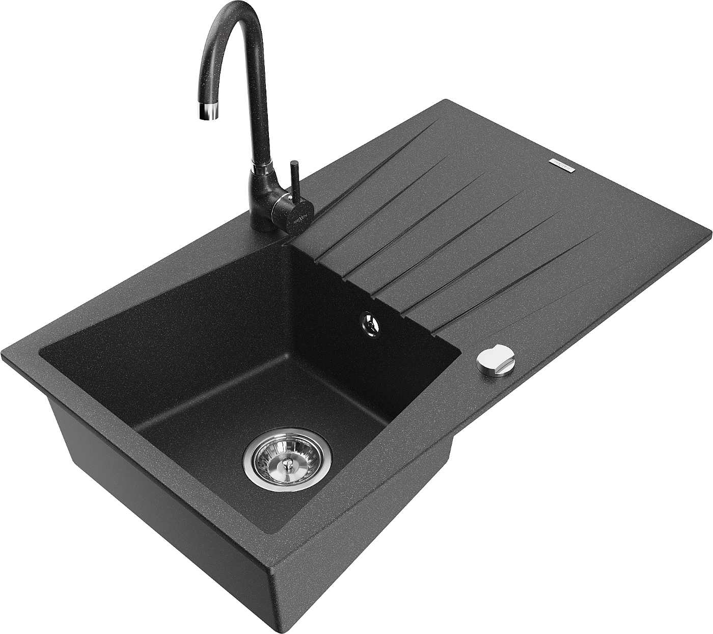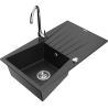 Mexen Cesar granitinė vienos komoros plautuvė su nusausintuvu ir virtuviniu maišytuvu Telma, juoda taškuota