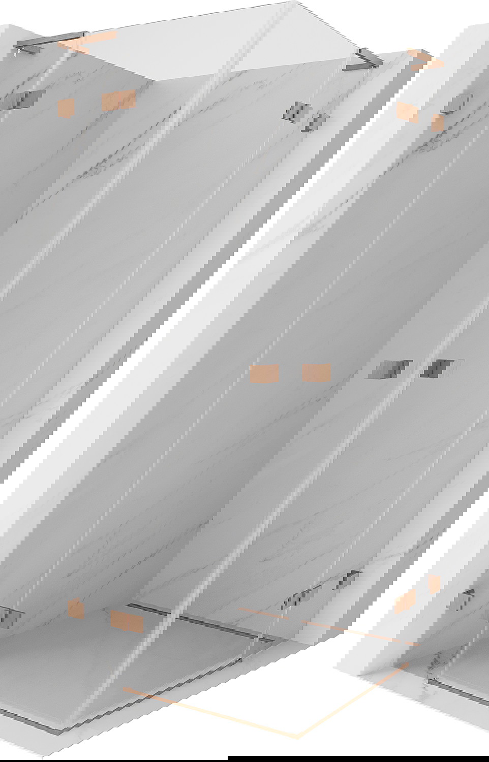 Spaustukai ir vyriai pagaminti iš labai patvaraus žalvario, papildomai sukuriantys lygią stiklo plokštumą. Tai puikus pasirinkimas, jungiantis eleganciją, patvarumą ir šiuolaikinį dizainą. Tokie sprendimai prideda dušo estetikai ir tuo pačiu palengvina švaros palaikymą.