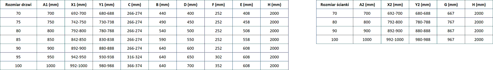 Dydis: 100x80 cm (kairės durys 100 cm, sienelė 80 cm)