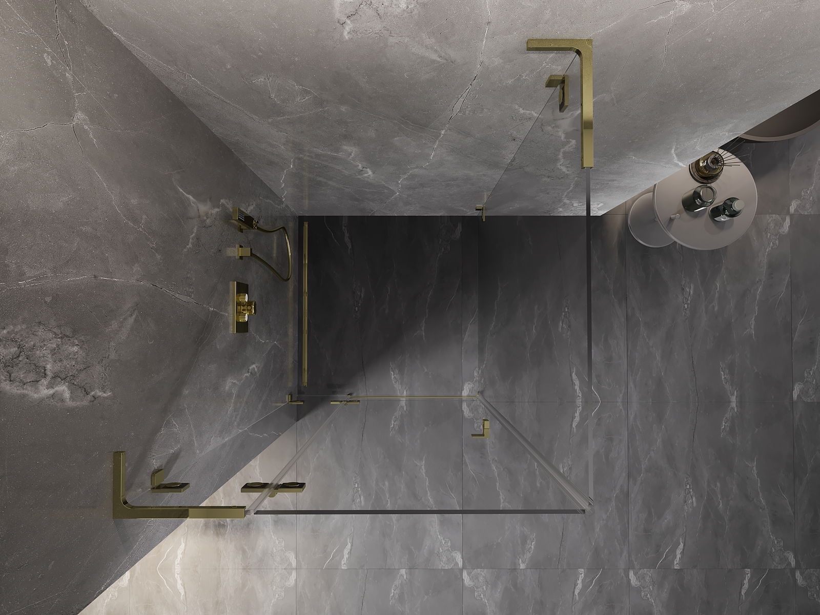 Spaustukai ir vyriai pagaminti iš labai patvaraus žalvario, papildomai sukuriantys lygią stiklo plokštumą. Tai puikus pasirinkimas, jungiantis eleganciją, patvarumą ir šiuolaikinį dizainą. Tokie sprendimai prideda dušo estetikai ir tuo pačiu palengvina švaros palaikymą.