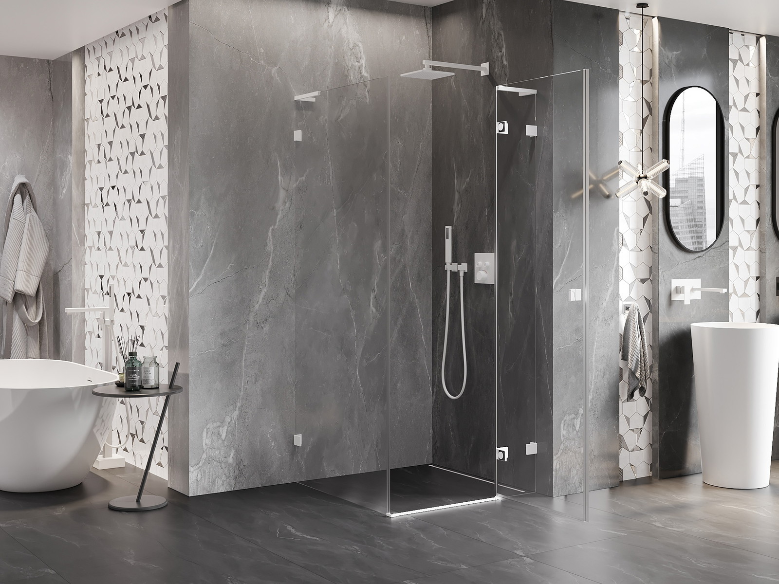 Dydis: 80x80 cm (dešinės pusės durys 80 cm, sienelė 80 cm)