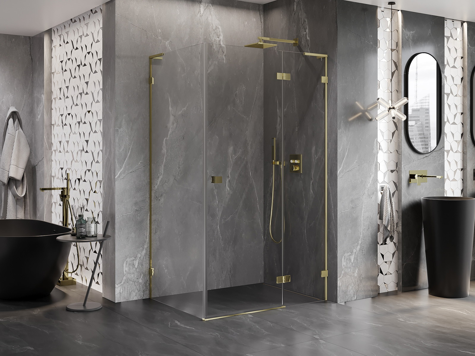 Mexen Lunar L dešinioji atveriama dušo kabina 95 x 90 cm, skaidri, auksinė - 834L-095-090-50-00-P