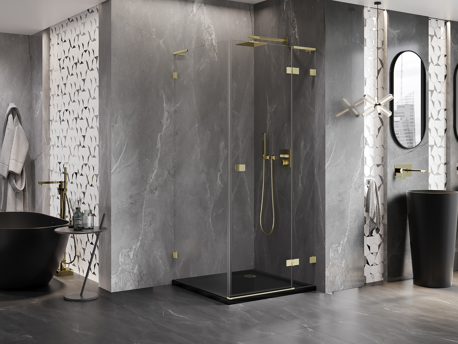 Mexen Lunar L atveriama dešinė dušo kabina 100 x 100 cm, skaidri, auksinė šlifuota - 834L-100-100-55-00-P