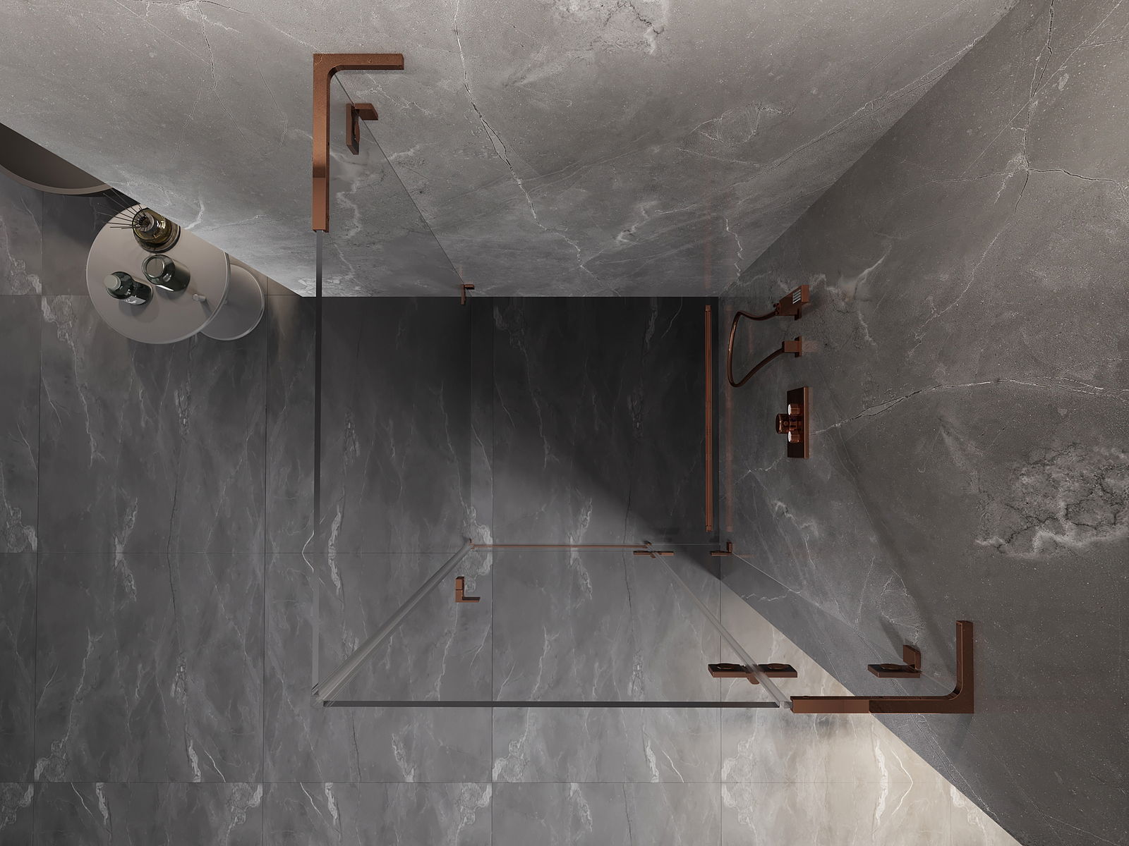 Spaustukai ir vyriai pagaminti iš labai patvaraus žalvario, papildomai sukuriantys lygią stiklo plokštumą. Tai puikus pasirinkimas, jungiantis eleganciją, patvarumą ir šiuolaikinį dizainą. Tokie sprendimai prideda dušo estetikai ir tuo pačiu palengvina švaros palaikymą.