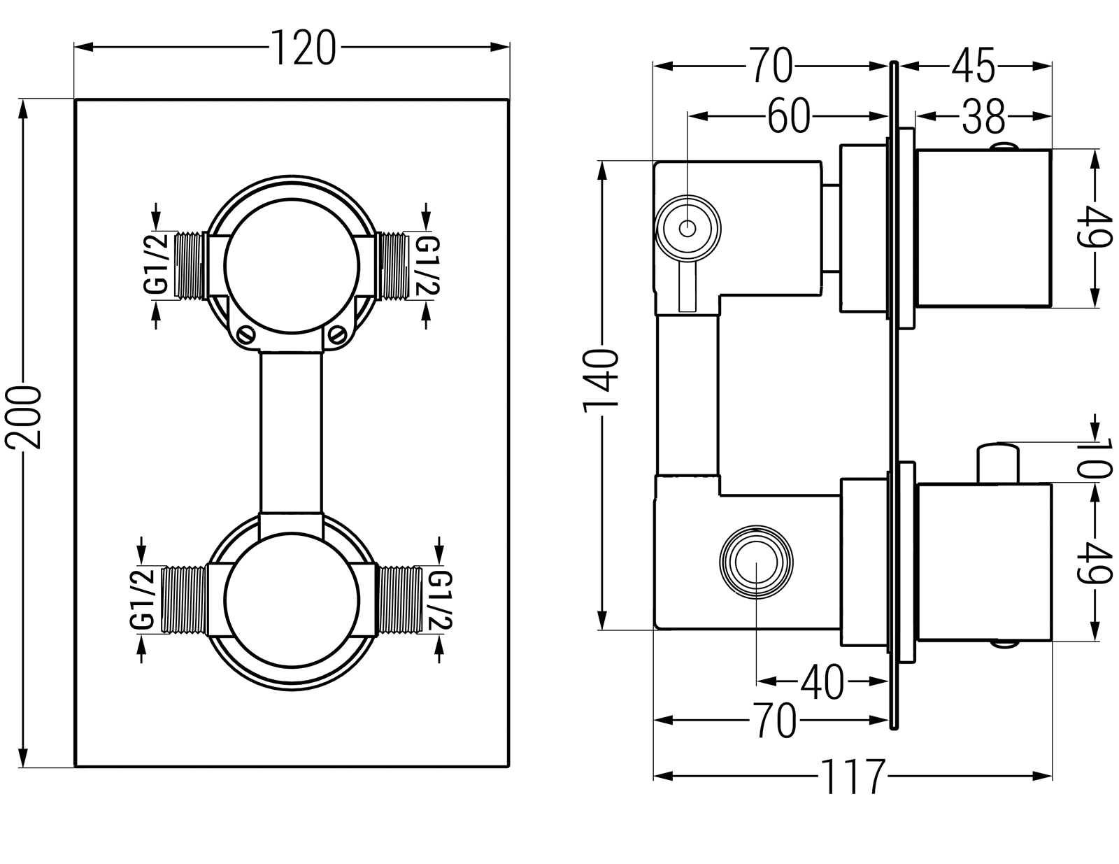 Jungtis: 2x Įėjimas 1/2" ir 2x išėjimas 1/2"