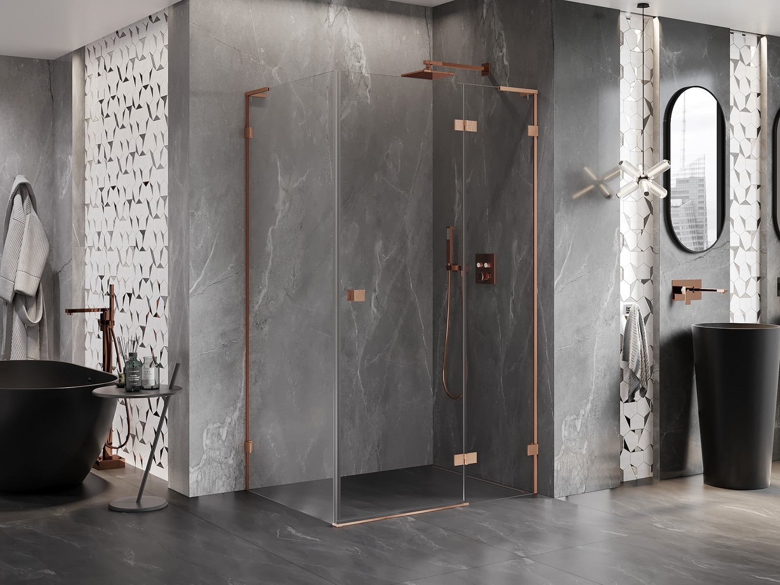 Dušo kabina Mexen Lunar L yra unikalus elegancijos ir funkcionalumo derinys. Matmenys 95x90 cm ir aukštis 200 cm puikiai tinka bet kurioje vonios aplinkoje. Dešinės montavimo pusės ir atveriamos durys užtikrina komfortą. Skaidrus, 8 mm storio grūdintas stiklas su danga, lengvinančia valymą. Šlifuota vario apdaila prideda klasės, o tvirtos žalvarinės rankenos ir vyriai, sulyginti su stiklo plokšte, užtikrina ilgaamžiškumą. Gali būti montuojama ant padėklo arba plytelių, o tvirtinimo sistemos su pločio reguliavimu leidžia lengvai pritaikyti kabiną prie sienų nelygumų.