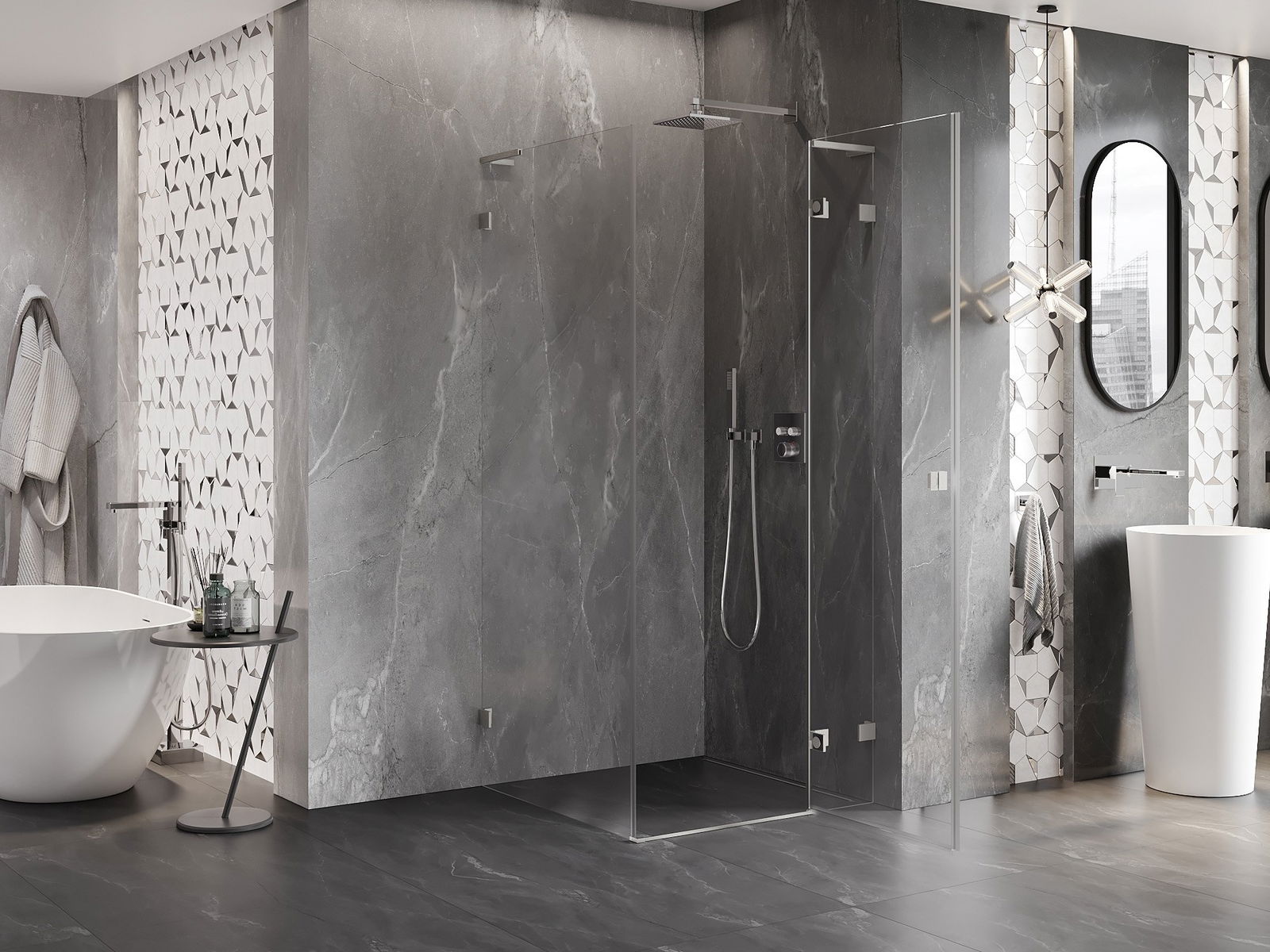 Spaustukai ir vyriai pagaminti iš labai patvaraus žalvario, papildomai sukuriantys lygią stiklo plokštumą. Tai puikus pasirinkimas, jungiantis eleganciją, patvarumą ir šiuolaikinį dizainą. Tokie sprendimai prideda dušo estetikai ir tuo pačiu palengvina švaros palaikymą.