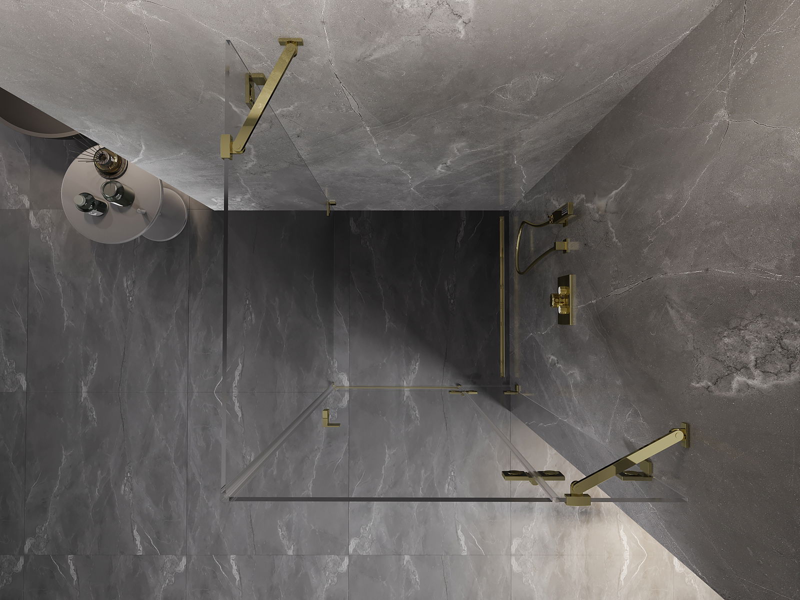 Mexen Lunar atveriama dešinioji dušo kabina 100 x 100 cm, skaidri, auksinė - 834-100-100-50-00-P
