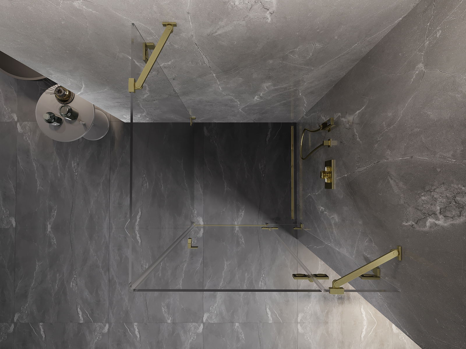Mexen Lunar dešinė atveriama dušo kabina 100 x 100 cm, skaidri, šlifuotas auksas - 834-100-100-55-00-P