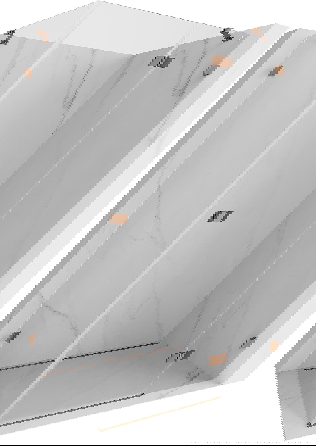 Spaustukai ir vyriai pagaminti iš labai patvaraus žalvario, papildomai sukuriantys lygią stiklo plokštumą. Tai puikus pasirinkimas, jungiantis eleganciją, patvarumą ir šiuolaikinį dizainą. Tokie sprendimai prideda dušo estetikai ir tuo pačiu palengvina švaros palaikymą.