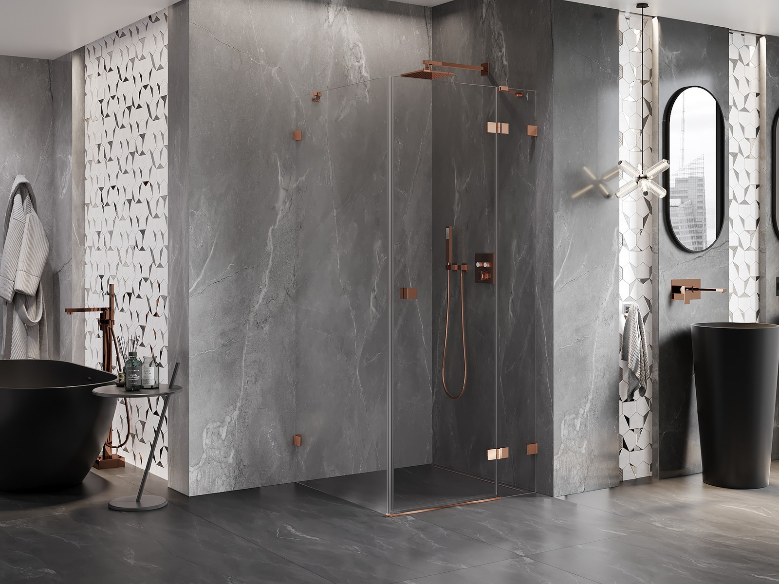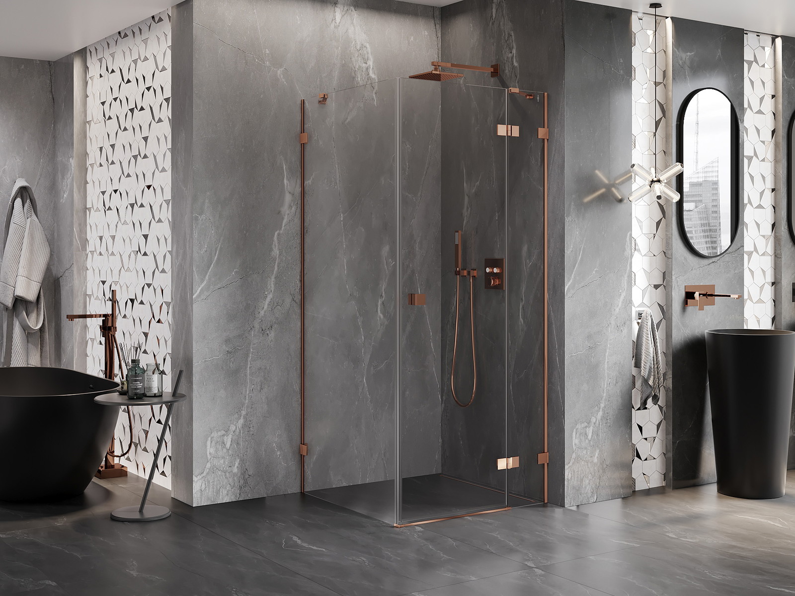 Mexen Lunar yra elegantiška varstoma dušo kabina, kurios matmenys yra 100 x 100 cm. Dėl savo permatomo stiklo ir rožinio aukso apdailos ji suteiks prabangos kiekvienai vonios kambario erdvei. Montavimas dešinėje pusėje, varstomos durys ir aukštis 200 cm suteikia komfortą naudojant. Grūdintas 8 mm storio stiklas yra patvarus, o valymą palengvinanti danga užtikrina lengvą priežiūrą. Galimybė reguliuoti plotį, įvairios tvirtinimo sistemos ir magnetinė sandariklio juosta užtikrina papildomą lankstumą montuojant.
