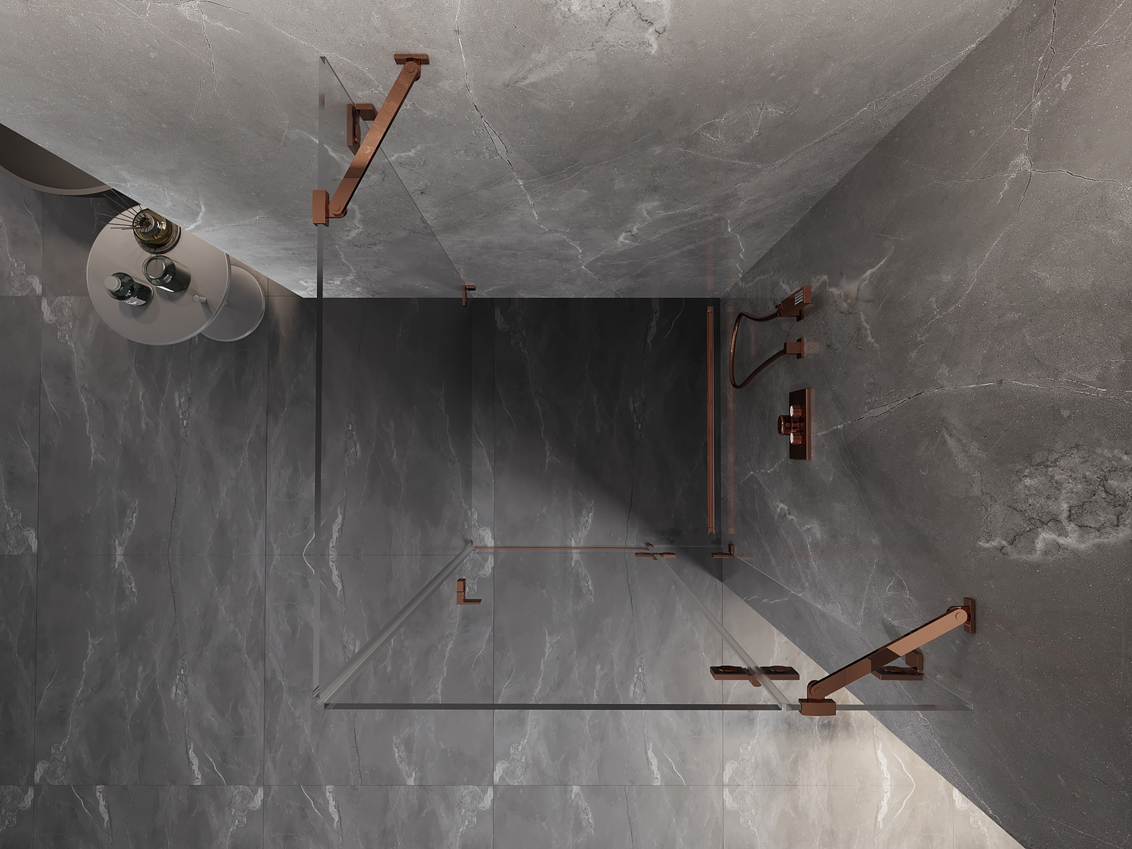Mexen Lunar varstoma dešinė dušo kabina 100 x 100 cm, permatoma, rožinis auksas - 834-100-100-60-00-P
