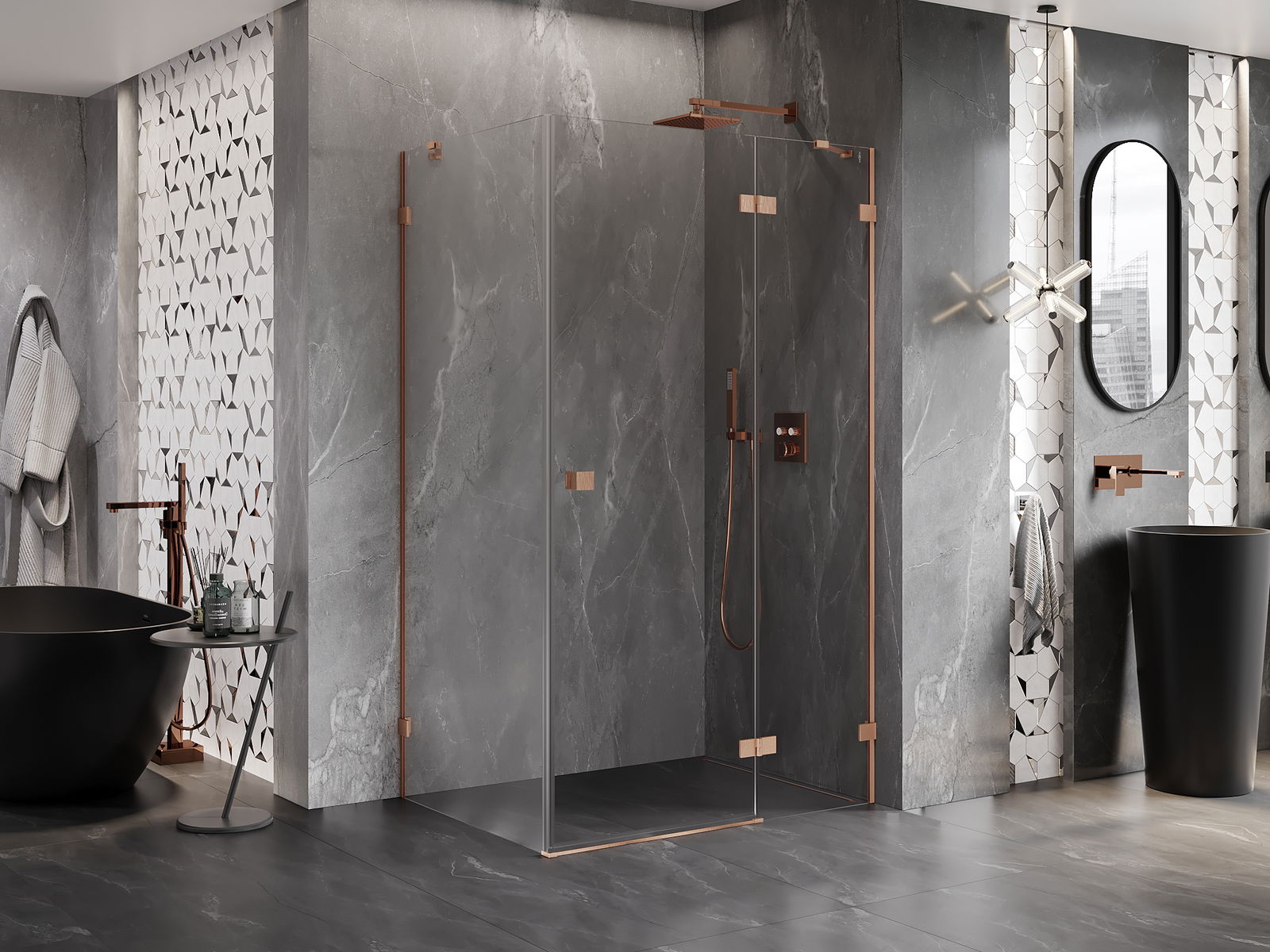 Mexen Lunar dušo kabina atveriama dešinė 85 x 80 cm, permatoma, šlifuotas varis - 834-085-080-65-00-P