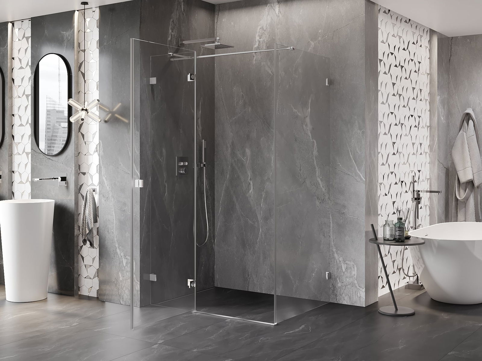 Produktą, atsižvelgiant į poreikius, galima sumontuoti tiek ant dušo padėklo, tiek tiesiogiai ant grindų. Universalus montavimo būdas leidžia pritaikyti produktą įvairių tipų vonios kambariams ir erdvės konfigūracijoms.