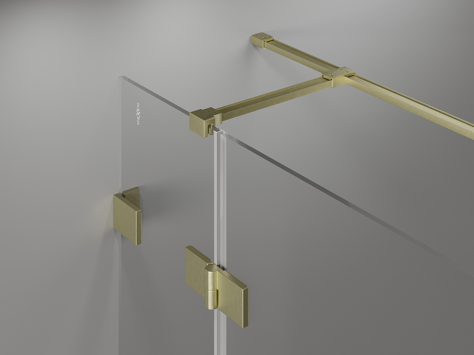 Žalvarinės rankenos ir vyros, suderintos su stiklo paviršiumi