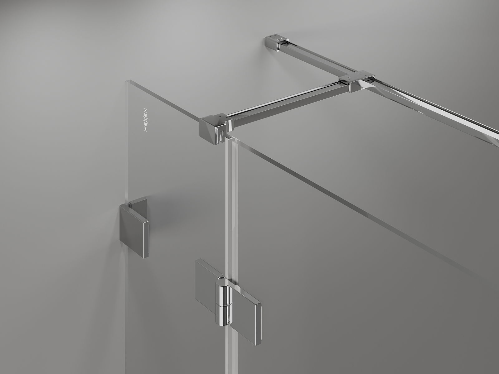 Spaustukai ir vyriai pagaminti iš labai patvaraus žalvario, papildomai sukuriantys lygią stiklo plokštumą. Tai puikus pasirinkimas, jungiantis eleganciją, patvarumą ir šiuolaikinį dizainą. Tokie sprendimai prideda dušo estetikai ir tuo pačiu palengvina švaros palaikymą.
