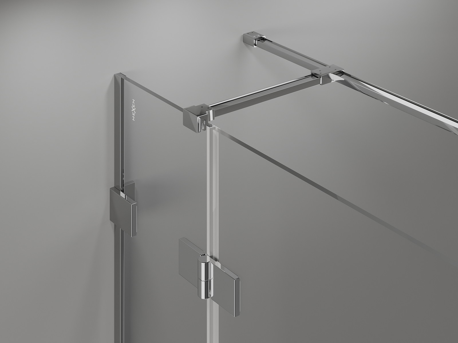 Spaustukai ir vyriai pagaminti iš labai patvaraus žalvario, papildomai sukuriantys lygią stiklo plokštumą. Tai puikus pasirinkimas, jungiantis eleganciją, patvarumą ir šiuolaikinį dizainą. Tokie sprendimai prideda dušo estetikai ir tuo pačiu palengvina švaros palaikymą.