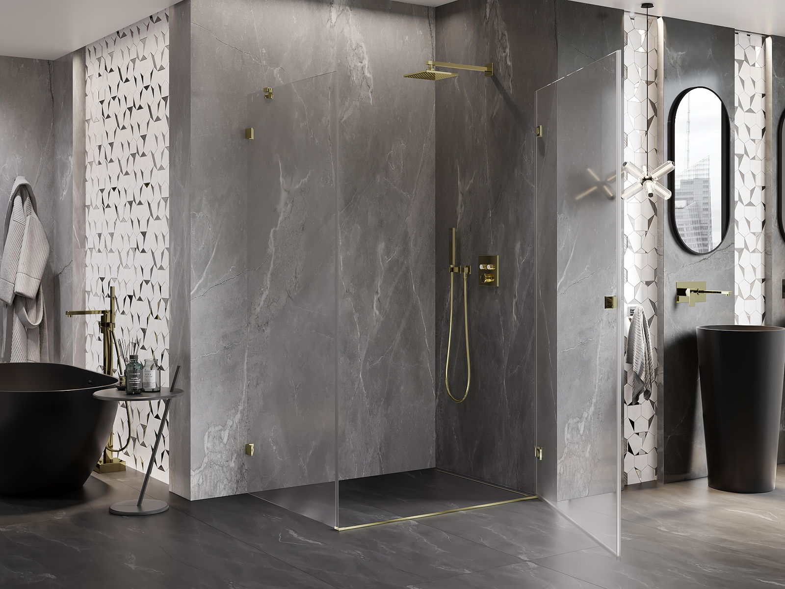 Spaustukai pagaminti iš labai patvaraus žalvario, o papildomai sudaro lygų stiklo paviršių. Tai puikus pasirinkimas, kuris sujungia eleganciją, ilgaamžiškumą ir šiuolaikinį dizainą. Dėl tokių sprendimų dušas įgauna estetikos, o kartu palengvina švaros palaikymą.