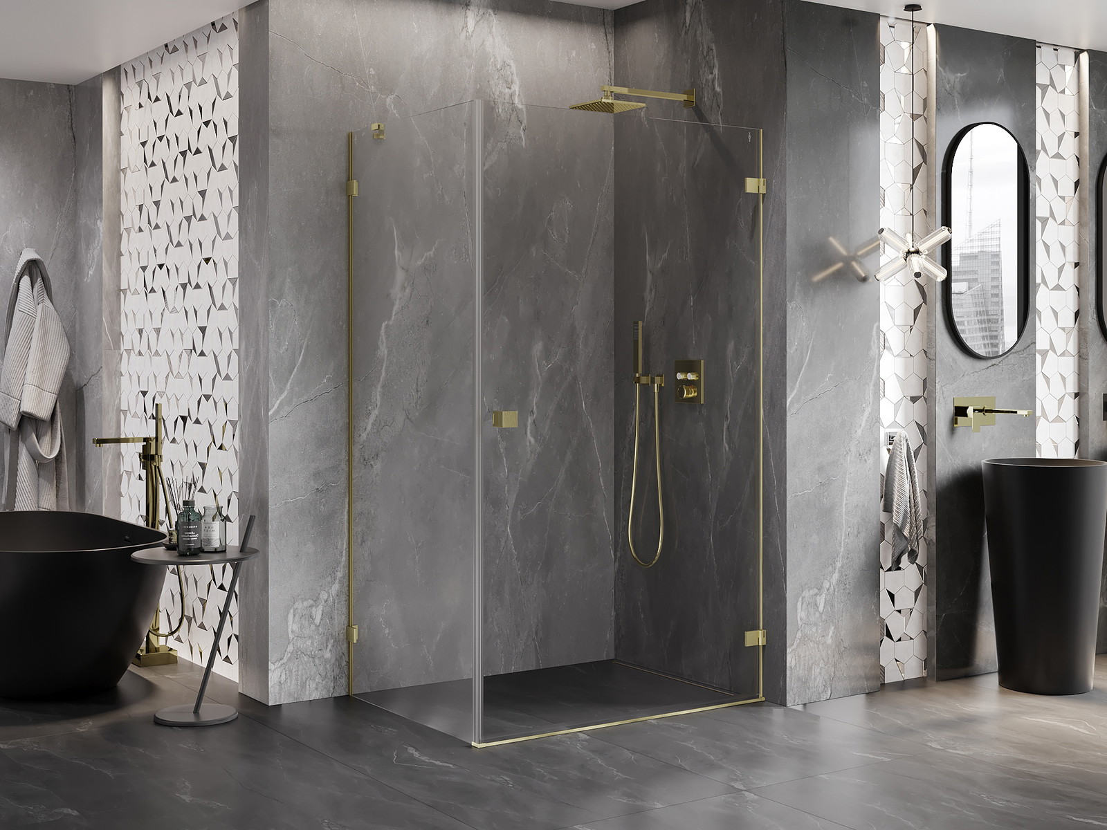 Mexen Lunar-B dešinė atsidarančios dušo kabina 85 x 80 cm, skaidrus, šlifuotas auksas - 832-085-080-55-00-P