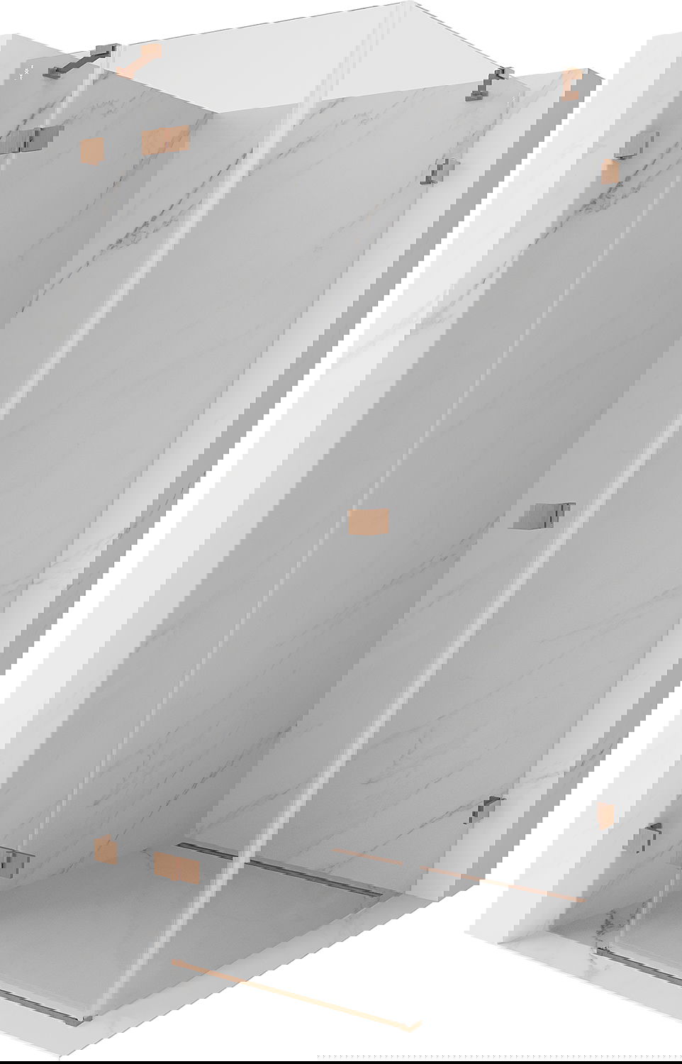 Spaustukai ir vyriai pagaminti iš labai patvaraus žalvario, papildomai sukuriantys lygią stiklo plokštumą. Tai puikus pasirinkimas, jungiantis eleganciją, patvarumą ir šiuolaikinį dizainą. Tokie sprendimai prideda dušo estetikai ir tuo pačiu palengvina švaros palaikymą.