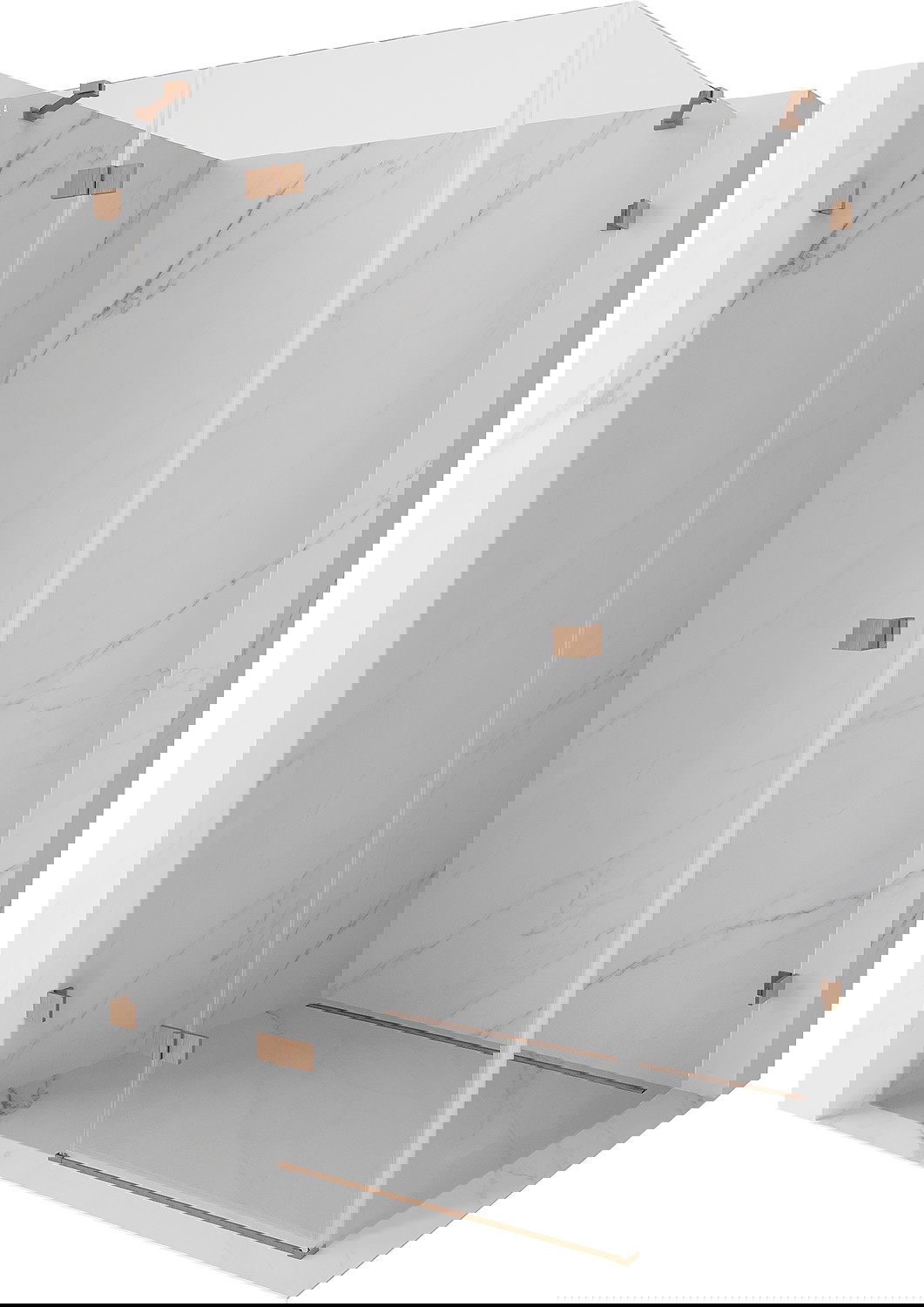 Spaustukai ir vyriai pagaminti iš labai patvaraus žalvario, papildomai sukuriantys lygią stiklo plokštumą. Tai puikus pasirinkimas, jungiantis eleganciją, patvarumą ir šiuolaikinį dizainą. Tokie sprendimai prideda dušo estetikai ir tuo pačiu palengvina švaros palaikymą.