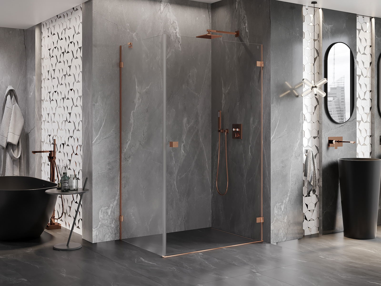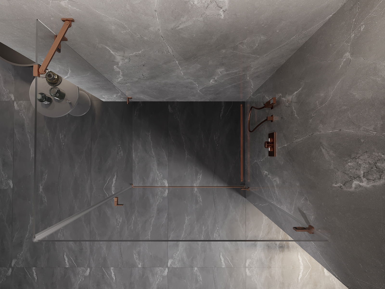 Mexen Lunar-B dušo kabina, atveriama, dešinė 90 x 70 cm, skaidri, šepečiu šlifuotas varis - 832-090-070-65-00-P